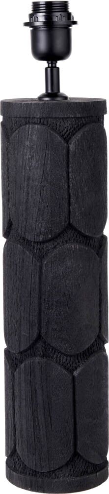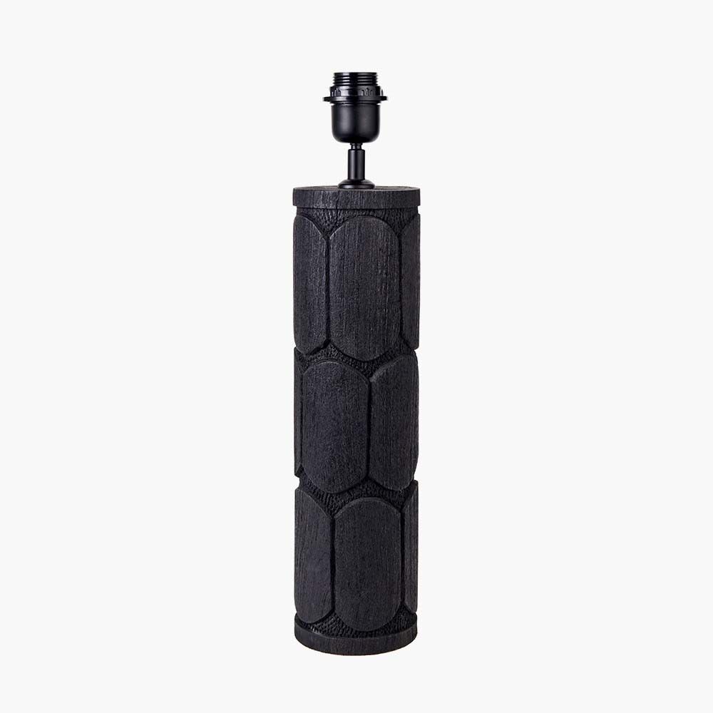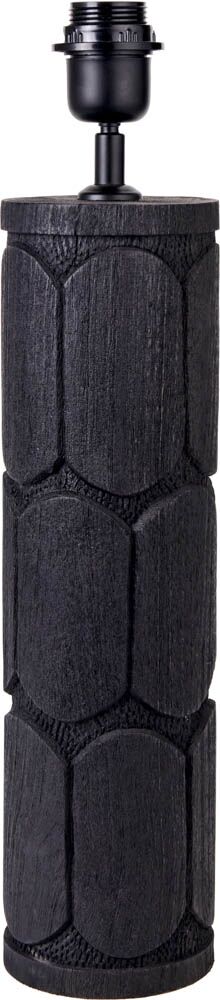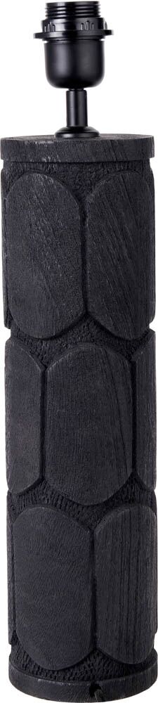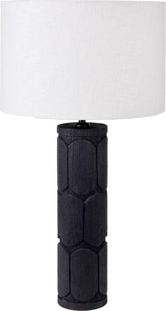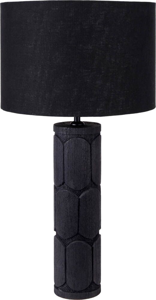 This wooden table lamp is the perfect addition to any home. Its soft black finish and elegant design provide a timeless, sophisticated look. The decorative embossed pattern adds a unique touch while the simple style blends effortlessly with any decor. Recommended lampshade size: 35cm diameter.