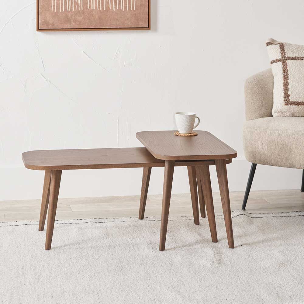 Expertly crafted in Vietnam from solid ash wood combined with a premium wood veneer and finished in an on-trend dark tone, our Elias Set of 2 Side Tables offers a versatile and stylish addition to any space. The set can be used together for dual surfaces at varying heights and widths, or separately to suit your unique space.