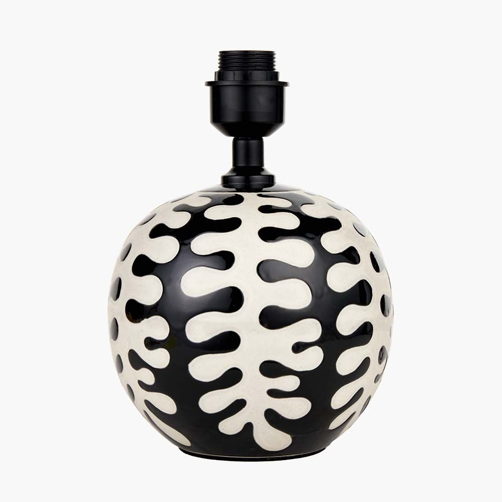 This stunning ceramic table lamp base in a perfectly proportioned sphere shape is sure to make a statement. The beautiful base has been lovingly decorated with a stylish coral design, in a contemporary monochrome colour palette that will suit a range of interior styles. Team with a shade from our shade range to complete the look. We recommend styling it with a 30cm shade.