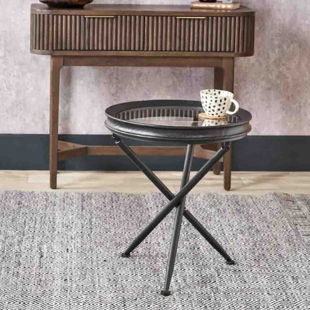 With its sleek glass top and striking black fir wood-effect frame, the Elwood side table adds a refined, contemporary touch to any modern space. Subtle black metal accents and slim legs lend an air of sophistication, echoing the elegance of boutique hotel design. Compact yet stylish, it combines form and function, perfect for placing a lamp, a favourite book, or a drink while you unwind.