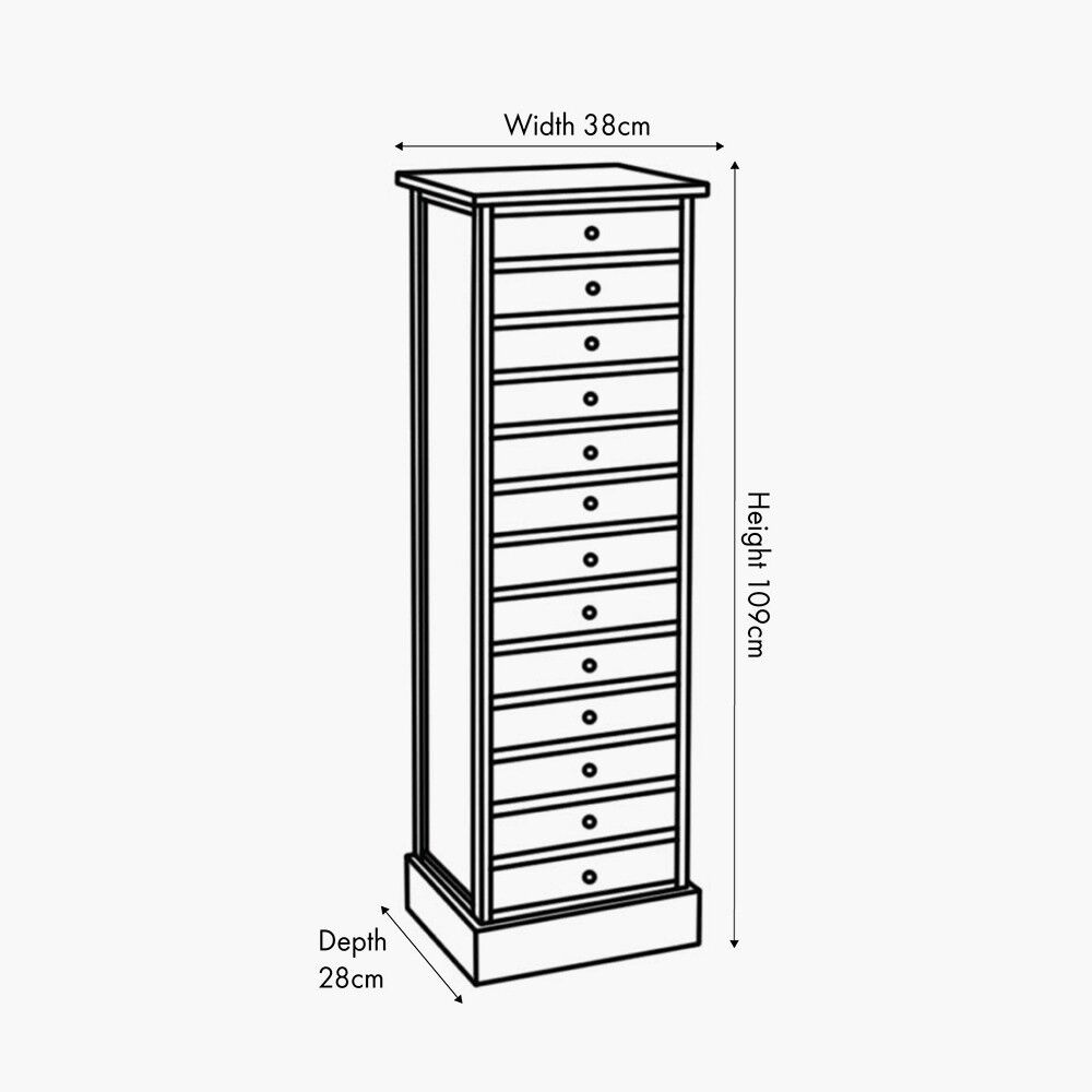 In line with the ever-popular Reclamation trending, this stunning 13 drawer unit from our Loft Collection encapsulates raw materials with an edgy industrial feel. Thirteen multi colour trinket drawers give this unit the ‘wow’ factor whilst providing quirky storage solutions for your home.