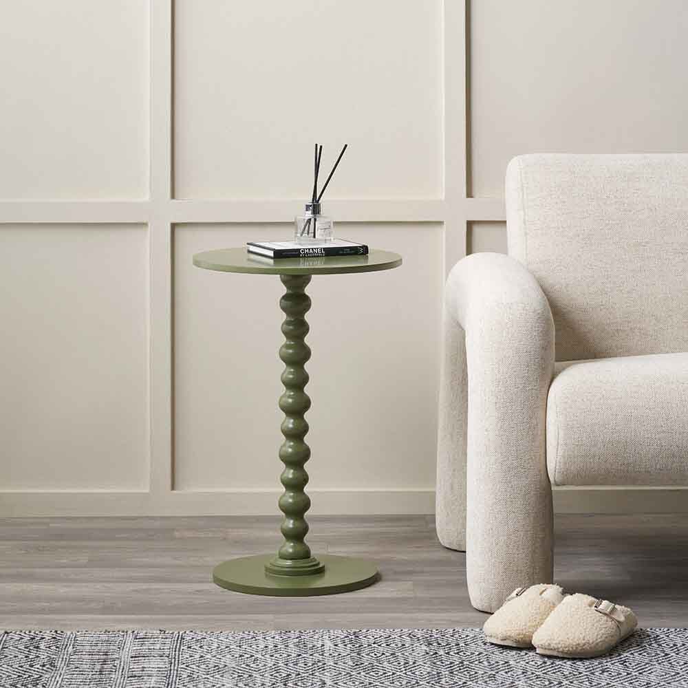 The Olive Wood Bobble Side Table offers sculptural simplicity with subtle impact. Its clean round top rests on a distinctive bobble stem base, finished in a smooth olive tone that feels modern, warm, and effortlessly versatile. A perfect blend of form and function for contemporary interiors.