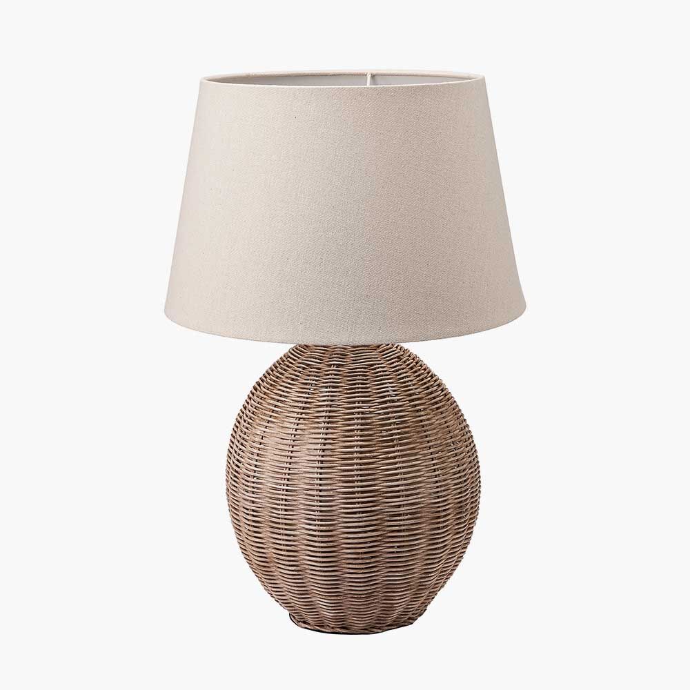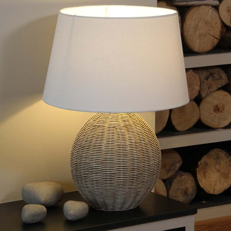 This table lamp is made from a beautiful antique cream wash Rattan and is in the shape of a ball. Bring the beach hut feel to your home with this fun lamp.