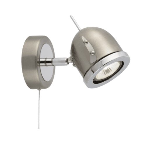 Single wall spotlight with on/off toggle pull switch.