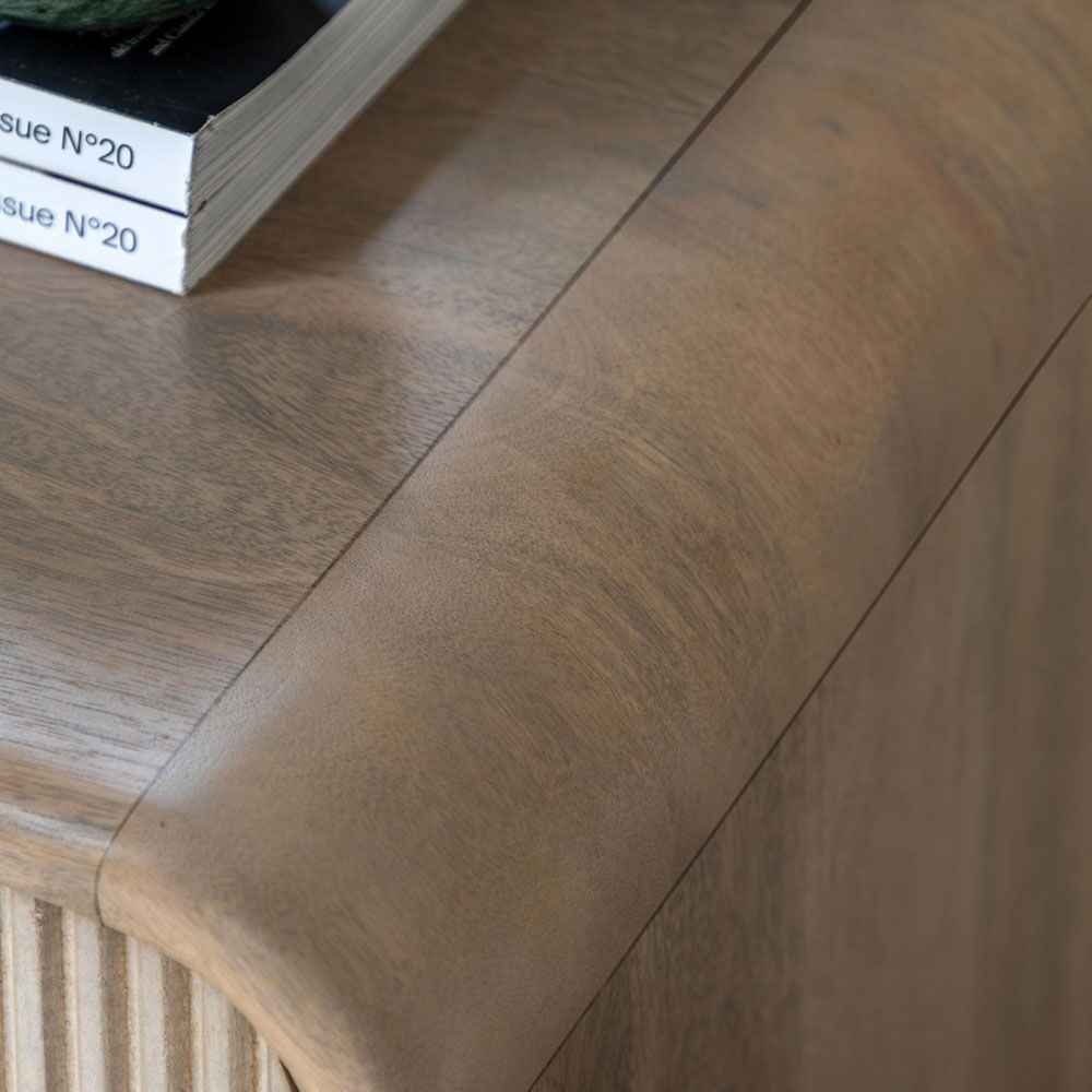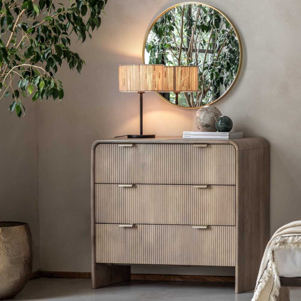 This 3 drawer chest combines sleek design with practical storage. Featuring curved tops and fluted drawers, this chest provides ample space for organizing clothing, accessories, or other essentials. Its refined aesthetic ensures it fits seamlessly into both contemporary and classic interiors, offering a functional and stylish storage solution.