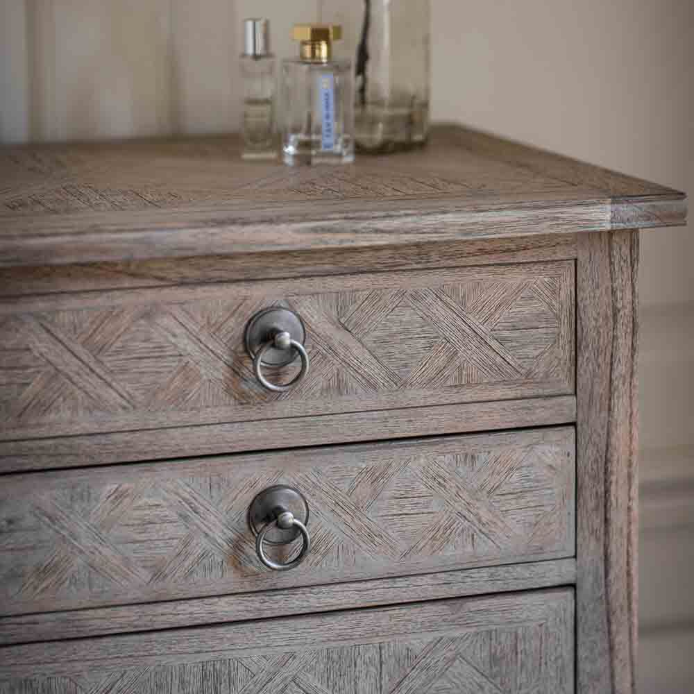 This collection is made from Mindy wood and lightly brushed to recreate the natural ageing of a beach side veranda, open to the elements of sun and sand. The design and finish has a nod towards French Colonial style but would equally suit a modern interior.