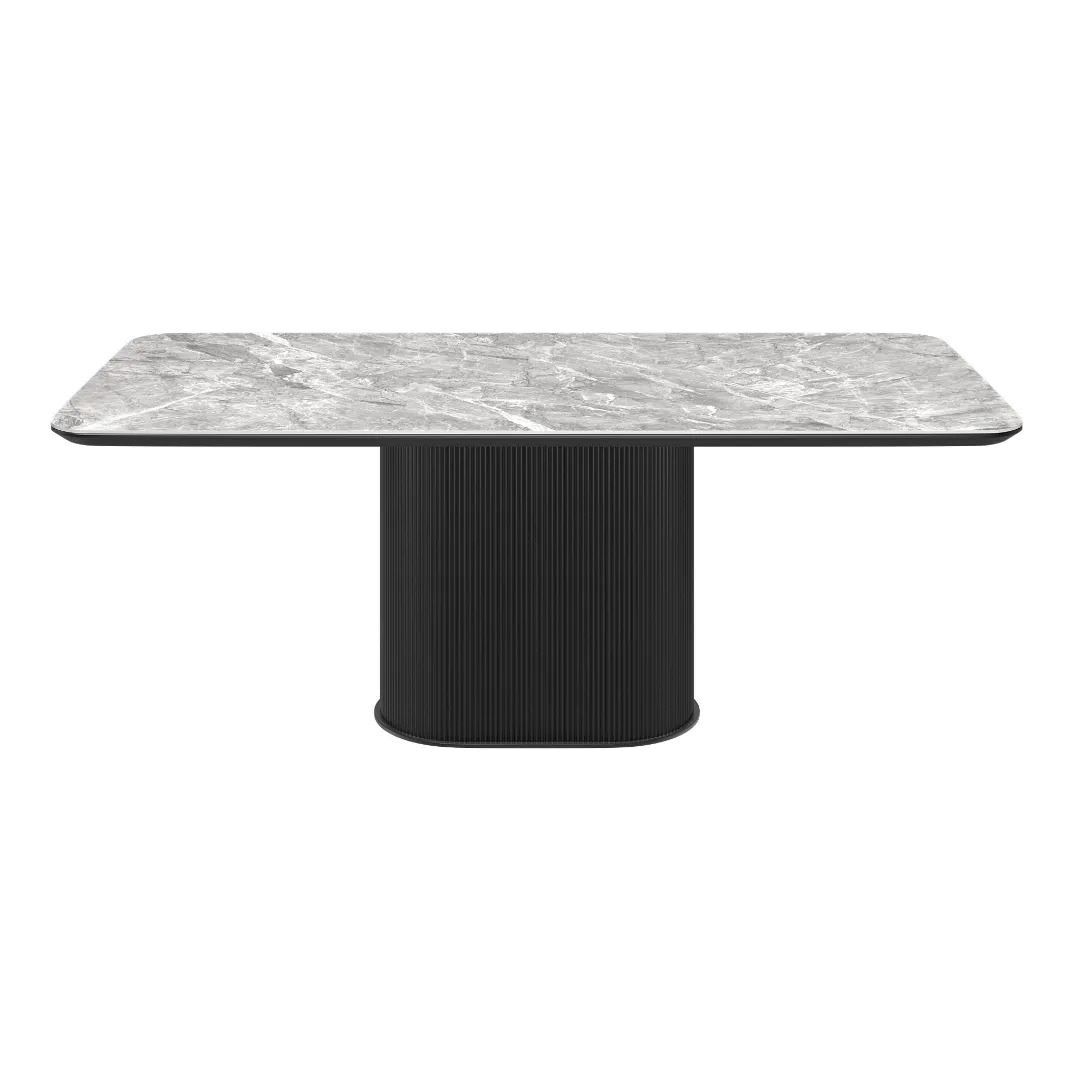 Discover the Roberto Dining Collection, a fusion of elegance and functionality that transforms your living and dining spaces. The main feature of this collection is the ribbed design which is apparent in all pieces of the range and are adorned with bevelled MDF and polished grey ceramic tops.