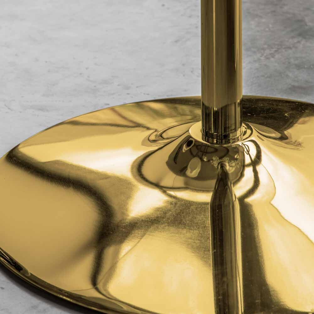 With a sophisticated round faux black marble glass top and smoothly curved gold base, this table is stunningly modern. Seating 4 people, it is great for a smaller space where style is still essential.