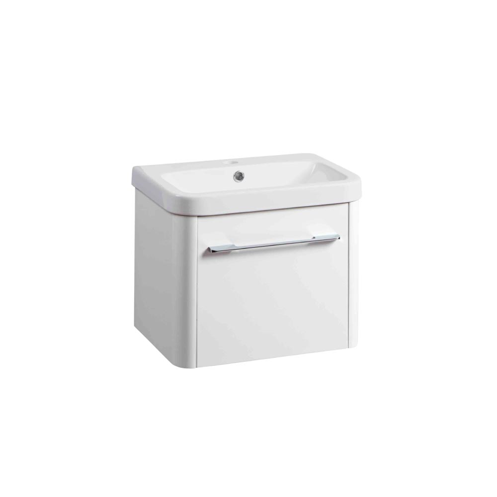 Roper Rhodes Contour 500 Wall Mounted 1 Drawer Complete Basin Unit – Gloss White