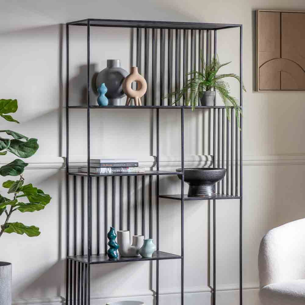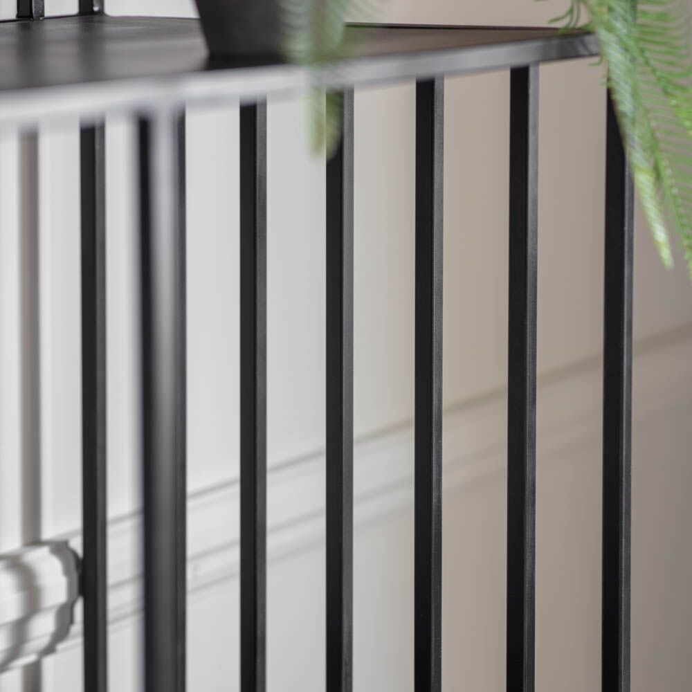 Eye-catching contemporary designed open display unit. Crafted from metal with a matt black finish, it features slatted design detailing to create this stunning look.