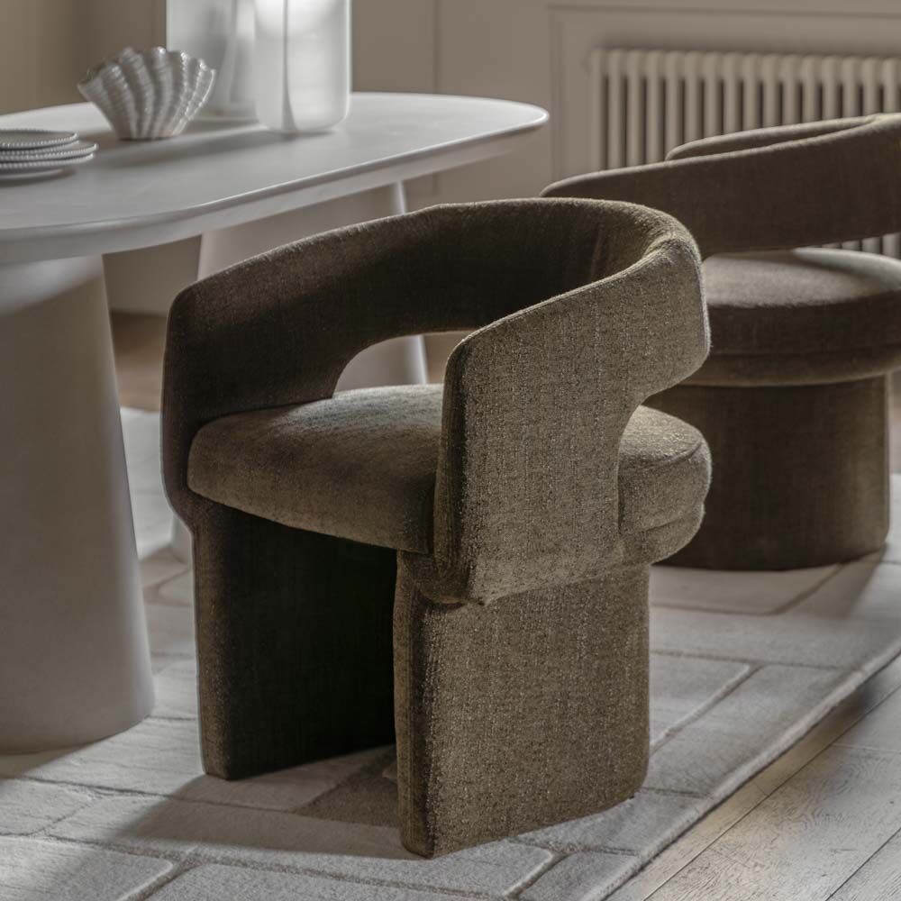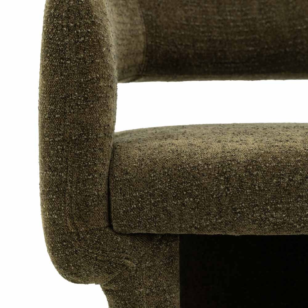 Ideal for creating a chic and comfortable dining experience, this chair combines modern aesthetics with high-quality craftsmanship. Elevate your dining space with the refined charm of our curved back contemporary dining chair in green boucle?where style meets sumptuous comfort.