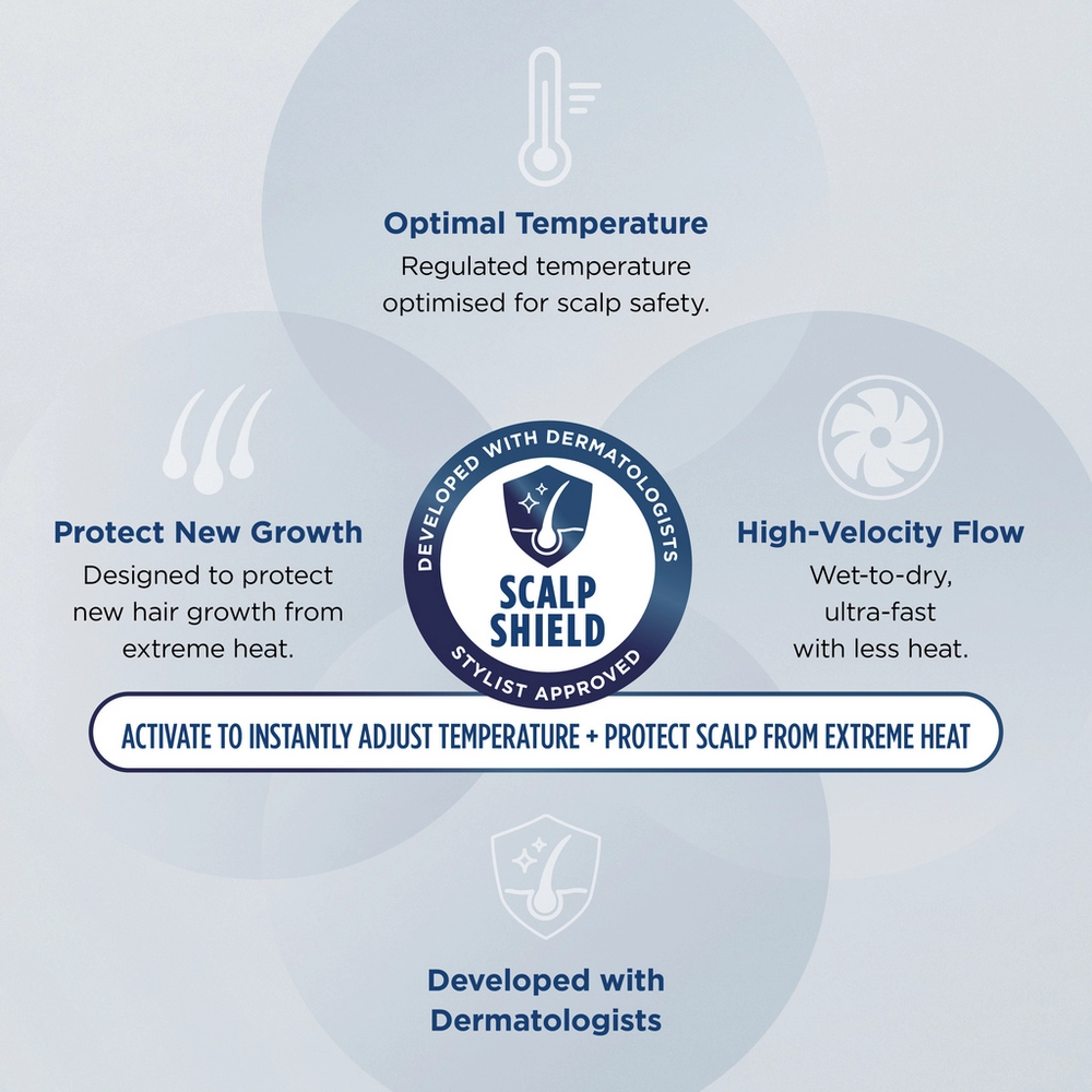 Designed with Scalp Shield Mode, this dryer provides intelligent temperature control to protect new hair growth and sensitive scalps from extreme heat. Its advanced heat regulation ensures your hair is dried and styled efficiently without damage, maintaining strength and natural moisture. Whether you’re perfecting a sleek blow-dry, adding bounce to curls, or taming frizz, the SpeedStyle Pro FLEX adapts seamlessly to your hair’s needs for a smooth, professional finish every time.