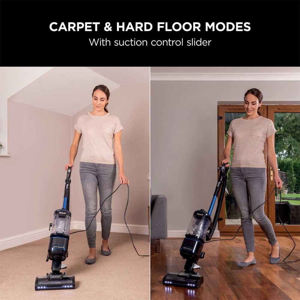 Switch between carpet and hard floor modes at the touch of a button. Adjustable suction control helps you clean thick and thin pile carpets, rugs and hard floors.