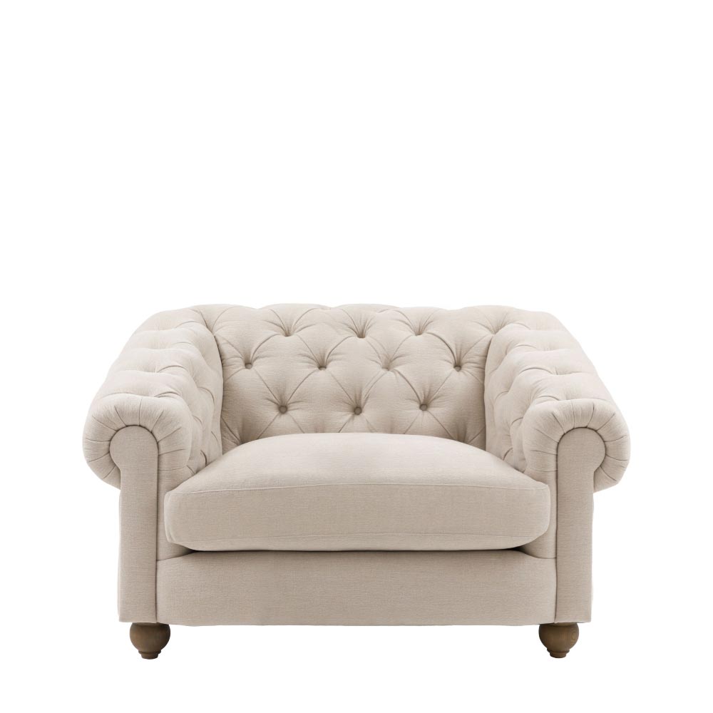 A timeless classic, reimagined for modern living. Featuring a deep buttoned back and scrolled arms with an updated, elegant silhouette, this armchair is a design classic reinvigorated for contemporary living. The polyester fibre filling and pocket sprung seat provide enduring comfort and support. Solid ash legs form the finishing touch, capturing the lasting appeal of traditional craftsmanship with a contemporary update. Perfect for bringing sophistication and character to any interior.