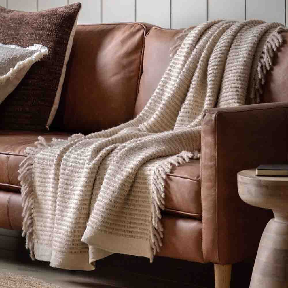 Soft and stylish this throw features a unique striped woven texture, the neutral tones make it perfect for a wide variety of interiors.