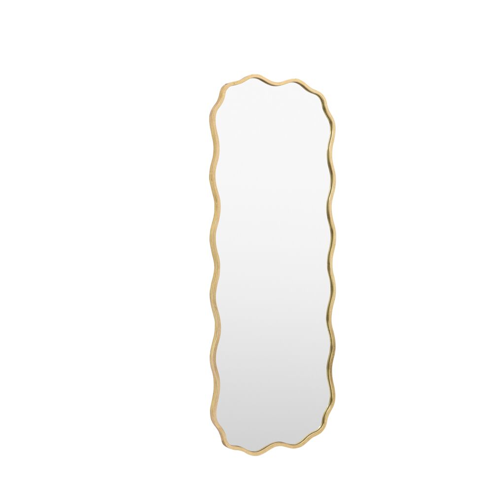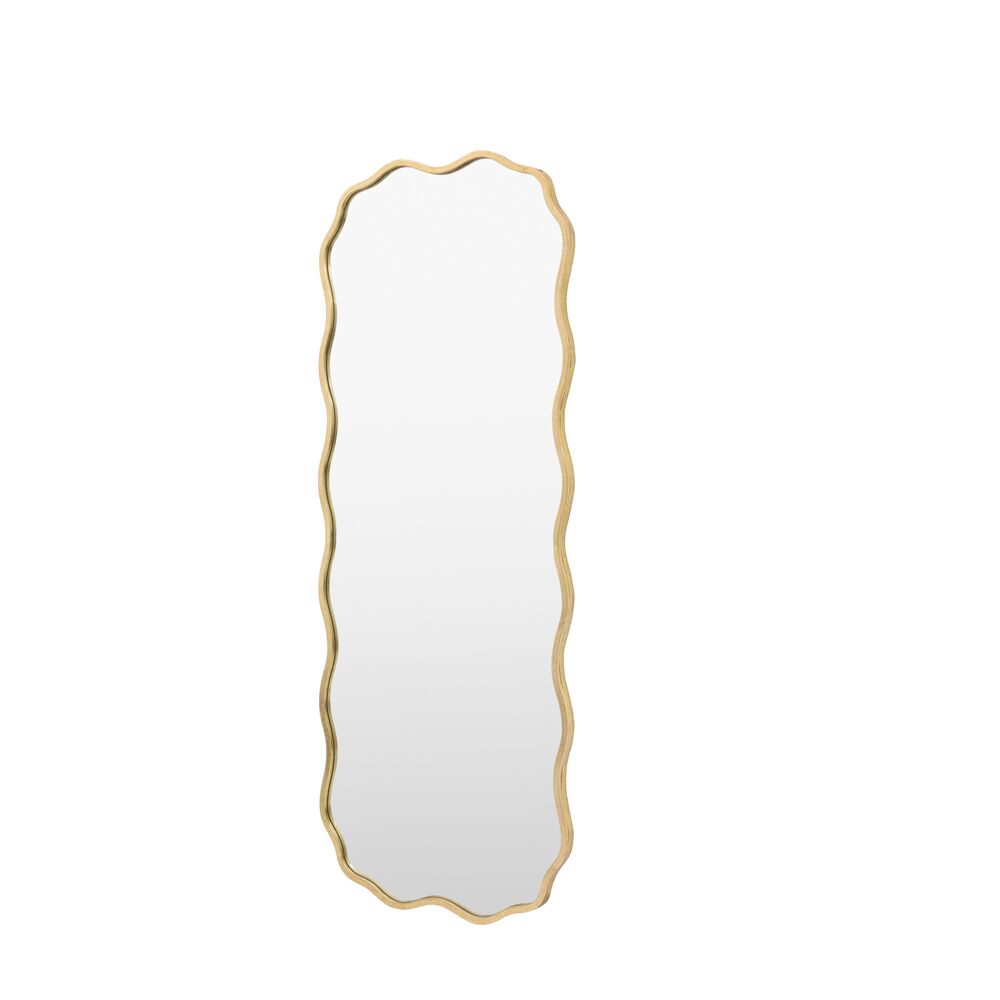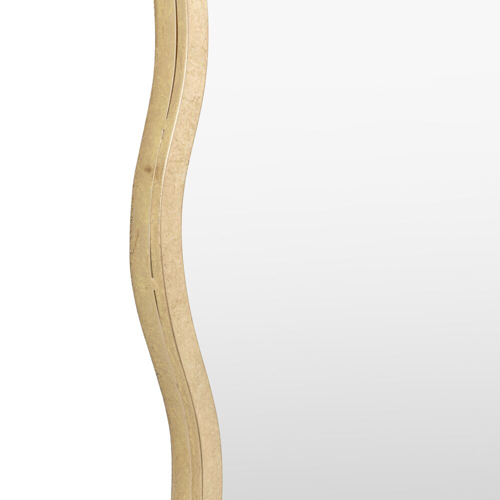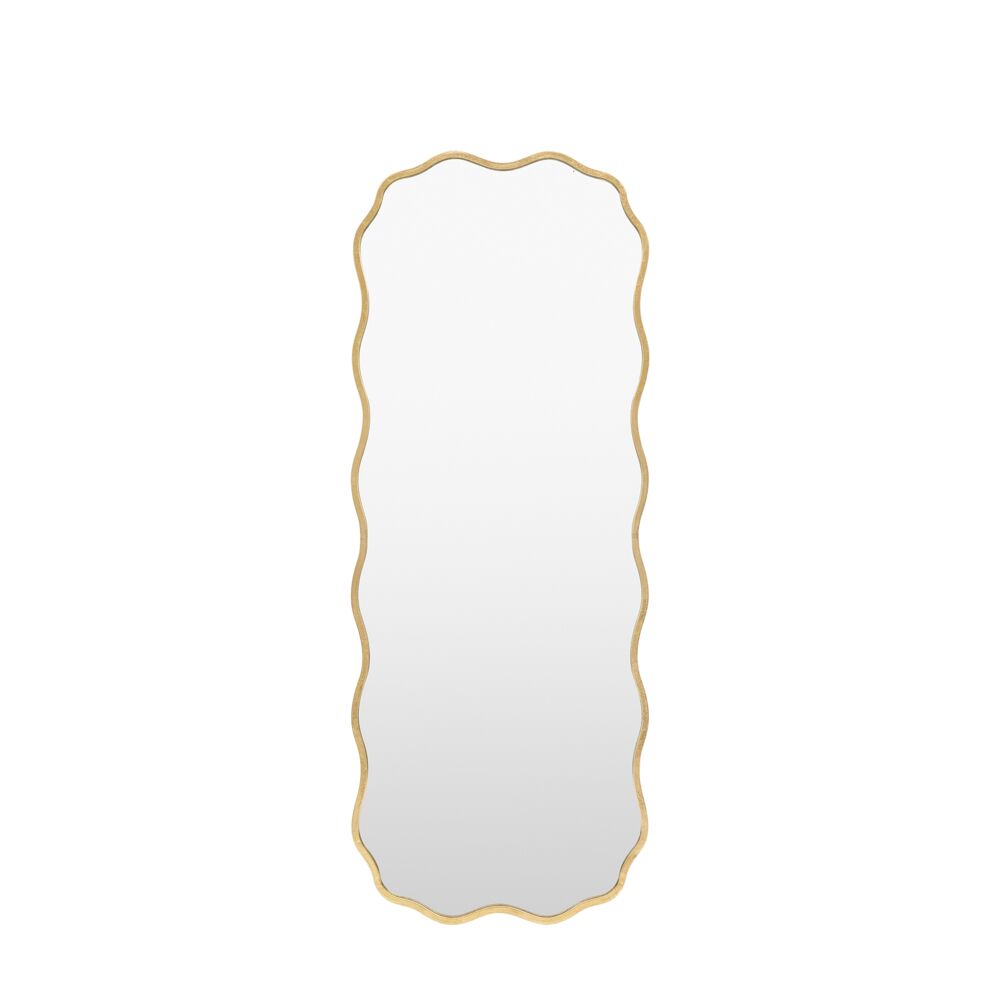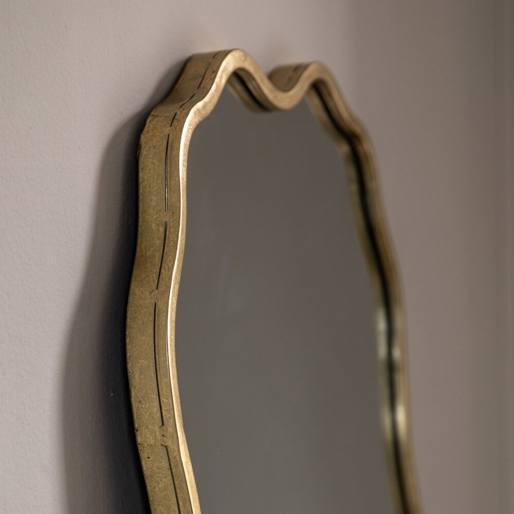 Add a dose of flair into your decor with our quirky round wavy edge leaner metal mirror in a rustic gold finish. Crafted from durable metal, this mirror combines a bold, unique design with high-quality craftsmanship.
