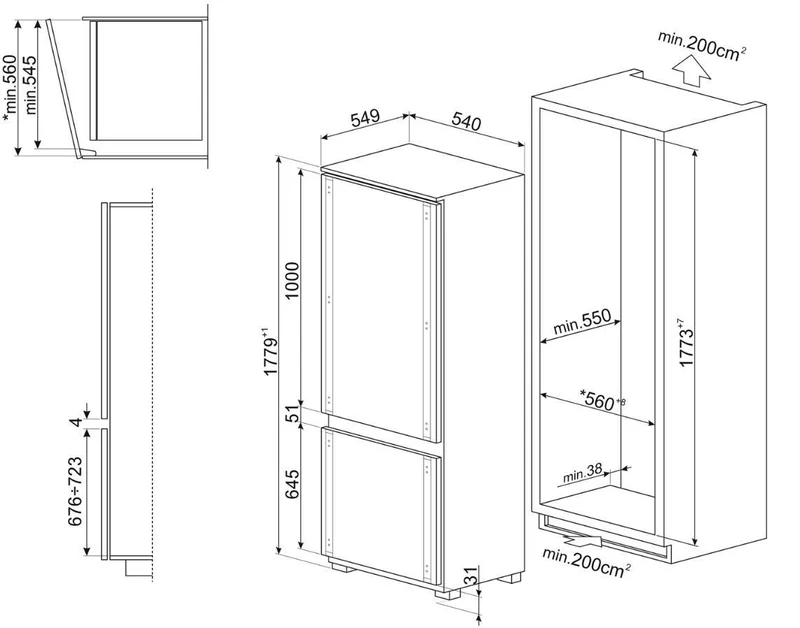 Smeg C9174TN5D 60cm Integrated Total No Frost 70/30 Fridge Freezer – Sliding Hinge