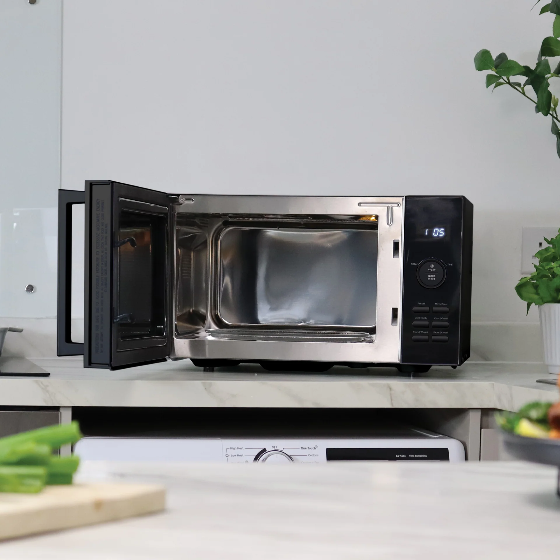 - 900W power with grill and convection- efficient, fast and even cooking