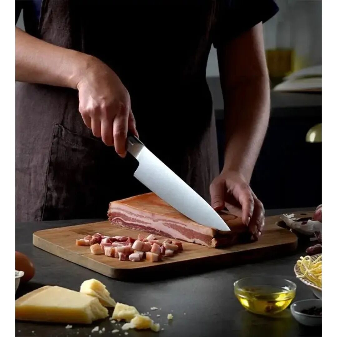 The eye-catching fusion design and precision ground stainless steel blade make this Stellar Poise Cooks Knife a star in the kitchen. Lightweight and comfortable to use, thanks to the ambidextrous handle, this high performance cooks knife can handle even the most challenging task while remaining rust-free and razor-sharp.