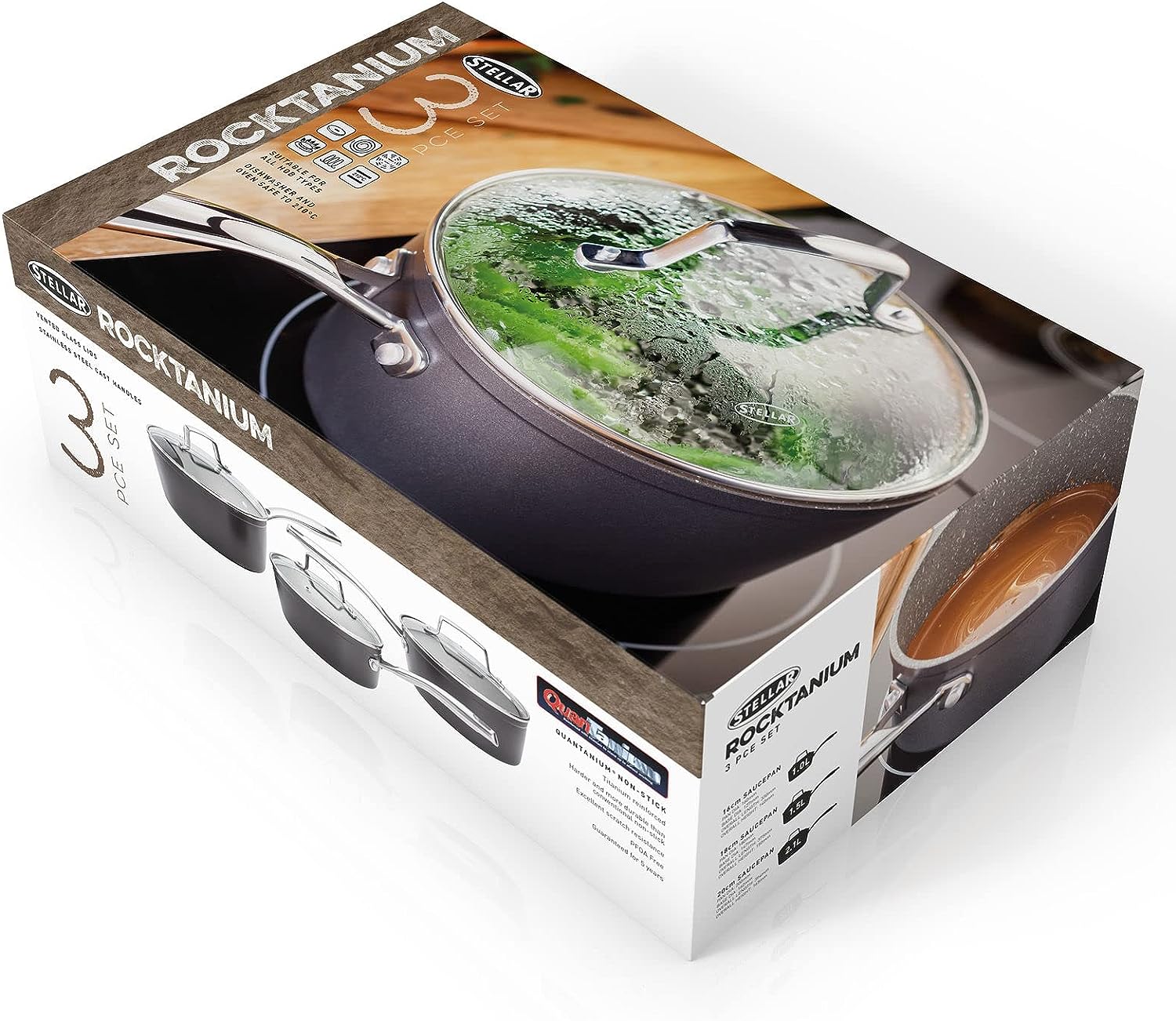 The Stellar Rocktanium range features a tough and scratch resistant QuanTanium non-stick surface.