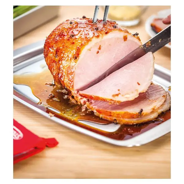 Sturdy carving tray with recessed gutter to keep juices away from your table