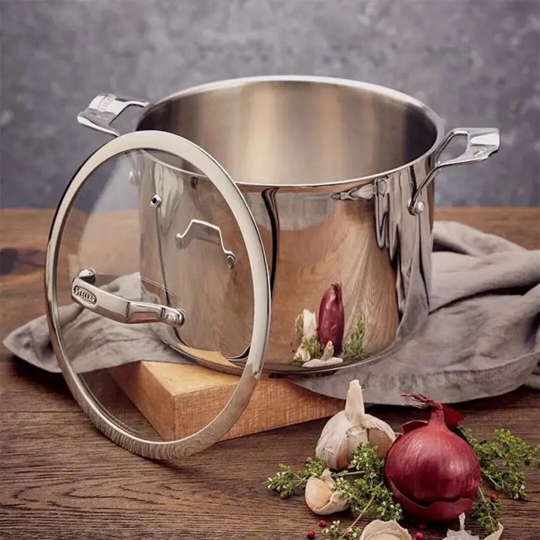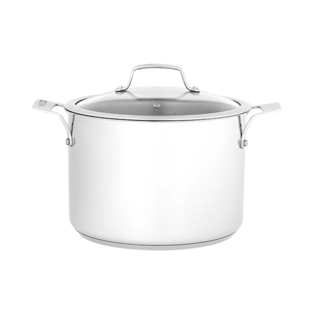 Craft flavourful stocks, stews, soups and casseroles with this large capacity stockpot designed for a lifetime of performance. Consistent – Thick, high conductivity base heats evenly for stable and efficient cooking. Enduring Style – Easily serve from hob to table thanks to solid steel handles and a stunning polished finish. Convenient – Strong, vented glass lid regulates steam and lets you monitor your meals.