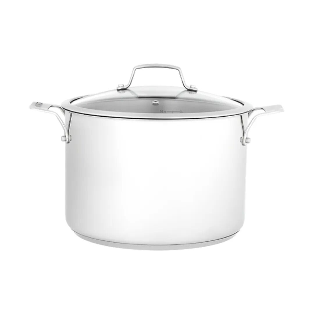 Craft flavourful stocks, stews, soups and casseroles with this large capacity stockpot designed for a lifetime of performance. Consistent – Thick, high conductivity base heats evenly for stable and efficient cooking. Enduring Style – Easily serve from hob to table thanks to solid steel handles and a stunning polished finish. Convenient – Strong, vented glass lid regulates steam and lets you monitor your meals.