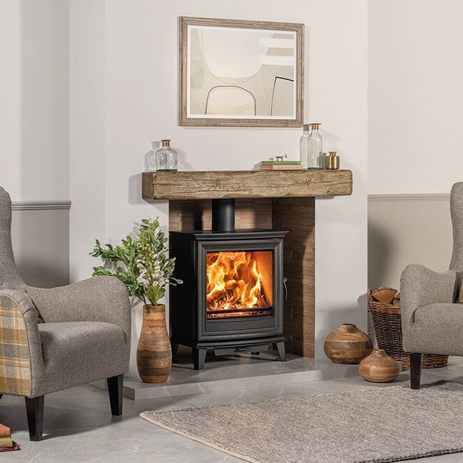This large format, slimline multi-fuel stove is perfect for settings where a shallower depth is required, without sacrificing flame visuals. This versatile stove features external ridding, which makes it capable of burning authorised smokeless fuels as well as logs. Broader and taller than the Chesterfield 5, the Chesterfield 5 Wide provides a 5kW heat output.