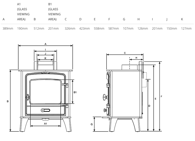 The County 3’s internal heat shields allow for lower distance to combustible clearances, and is also suitable for installation with a 12mm hearth.