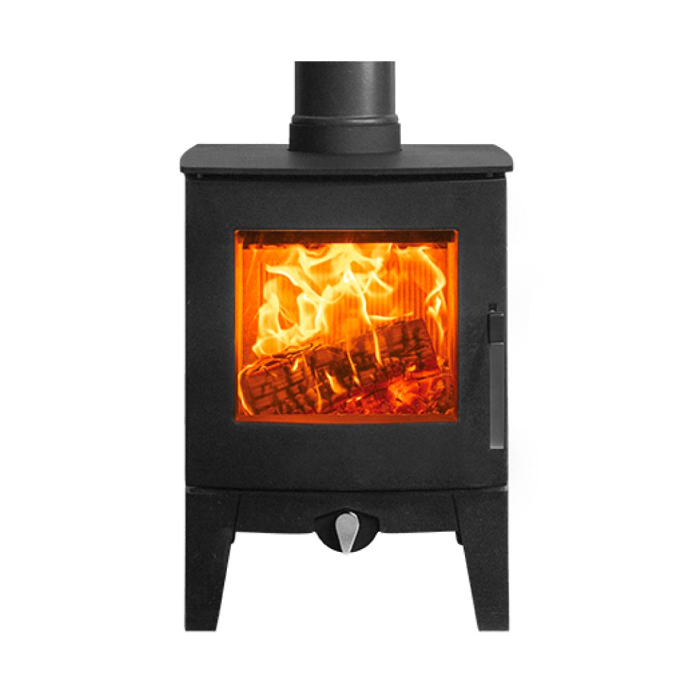 Pairing contemporary style with a steady heat output of 4kW, the Stovax Futura 4 is a small wood burning stove and multi-fuel stove that makes for the perfect centrepiece in cosier family rooms, snugs, home offices and houseboats. Its curved door and large viewing window combine with an advanced Airwash system to ensure this little log burner provides a crisp flame visual all winter long!