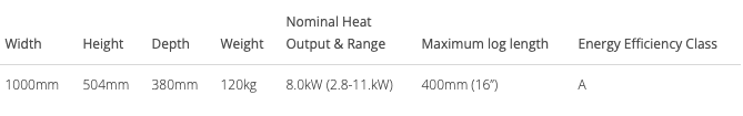 | Fire Heat Output | 8kW+ |