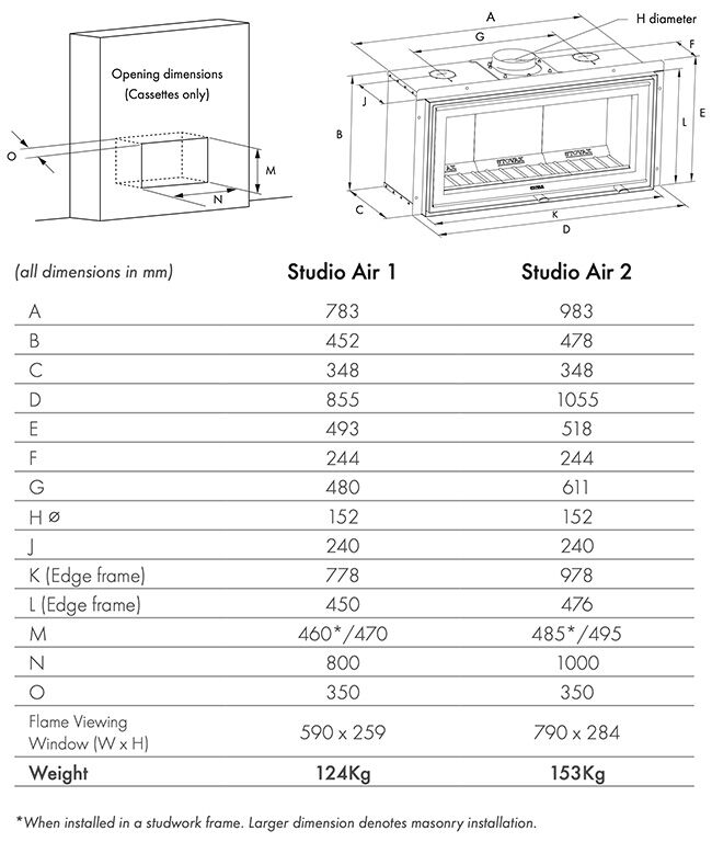 Stovax Studio Air 1 Cassette Woodburning Fire Frame Options