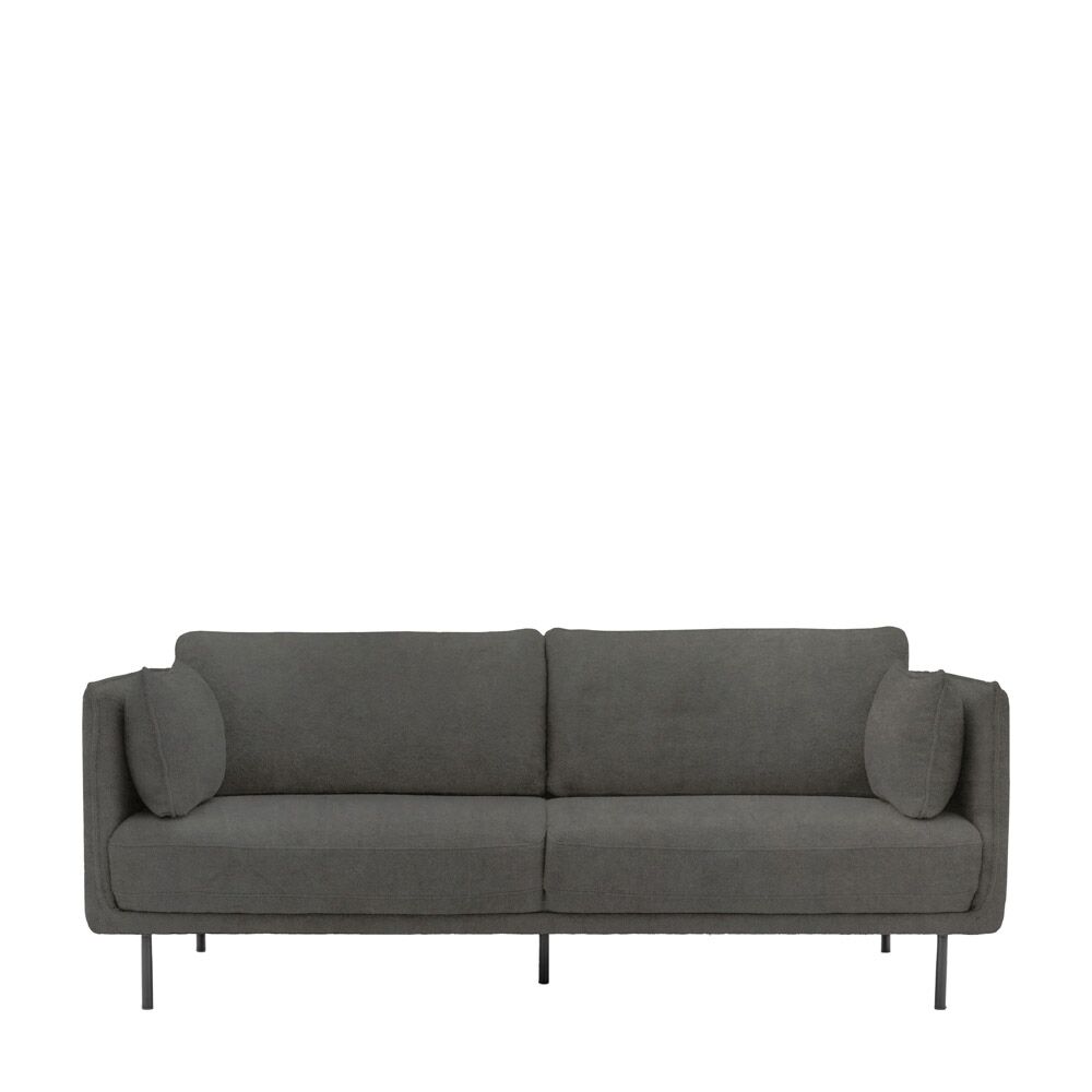 Offering a sleek contemporary look, this stylish sofa is fully upholstered in a lovely truffle colured velvet, with black metal legs perfectly complementing the design. The slim arms feature stitch seam detailing which is echoed on the side cushions. Also available in other colours.