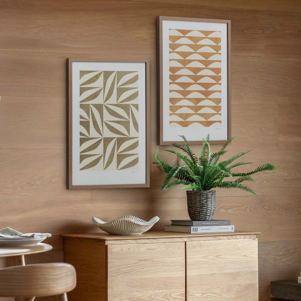 Create a sense of calm and balance with this framed art set. This set of two prints features harmonious geometric patterns in a soothing neutral palette, perfect for adding a touch of understated elegance to any room.