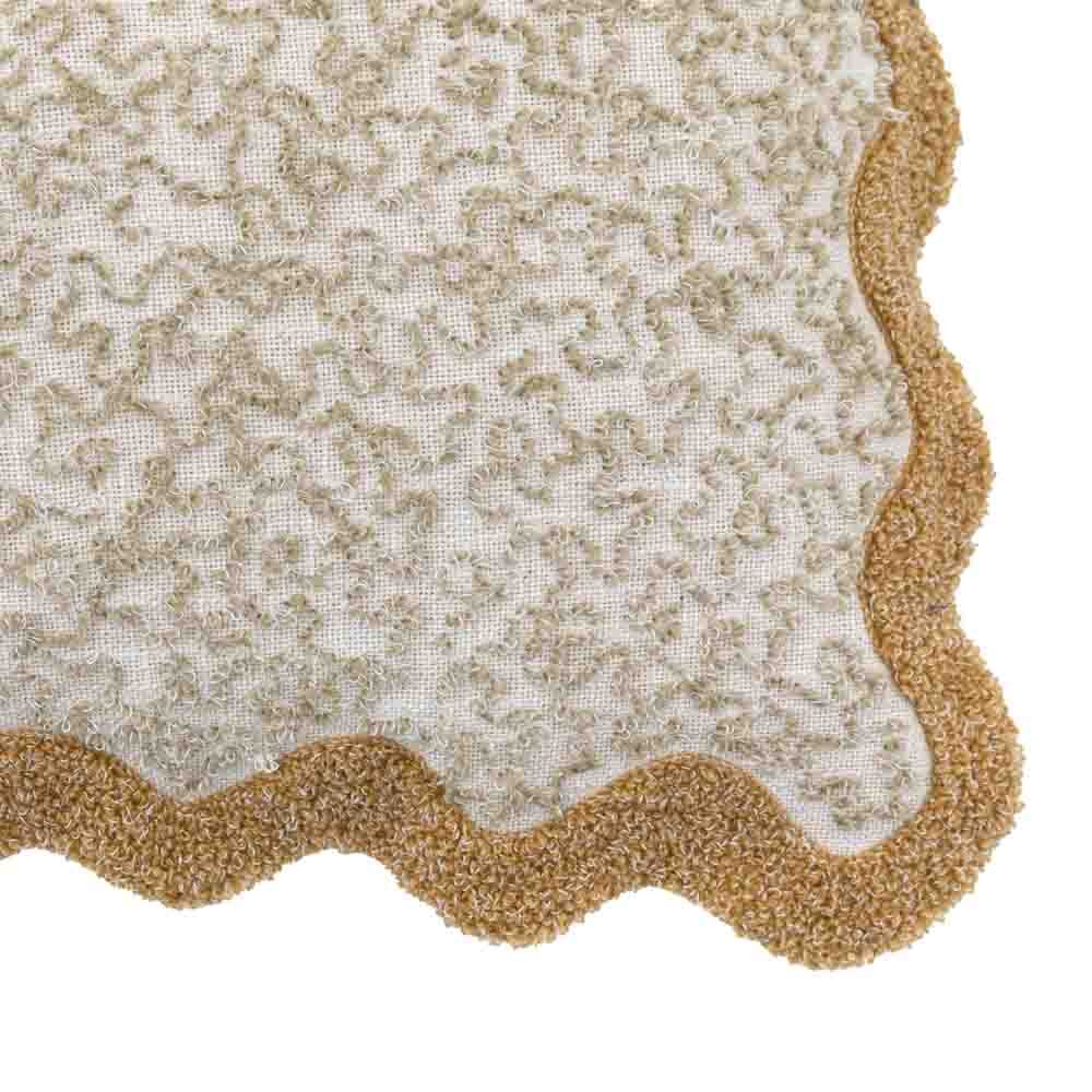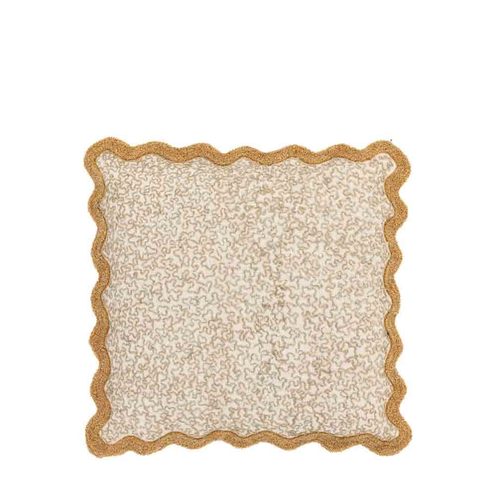 A unique scalloped edge cushion, with delicate embroidery.
