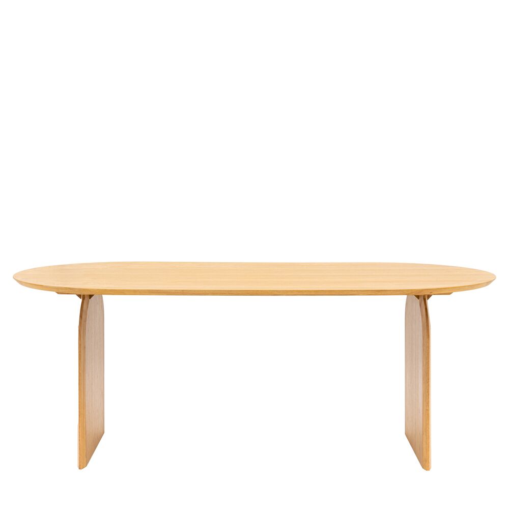 Designed to highlight the use of geometric design, with a nod towards retro style but in a more modern format, this beautiful dining table features a lovely elegant top with curved ends, with this form echoed on the tops of the legs. It is made using oak veneers and solids, where practical, with a natural matt finish. Matching pieces available.