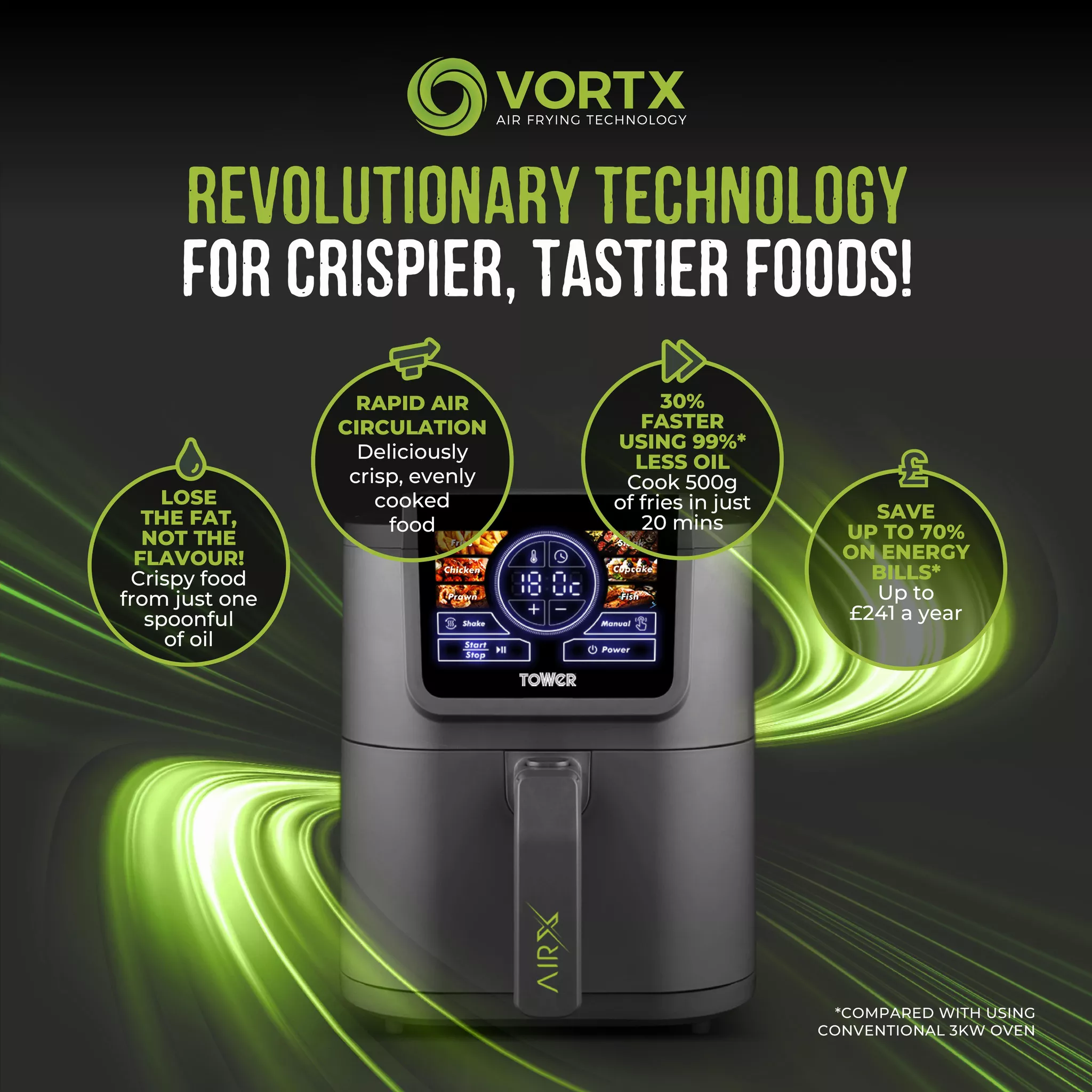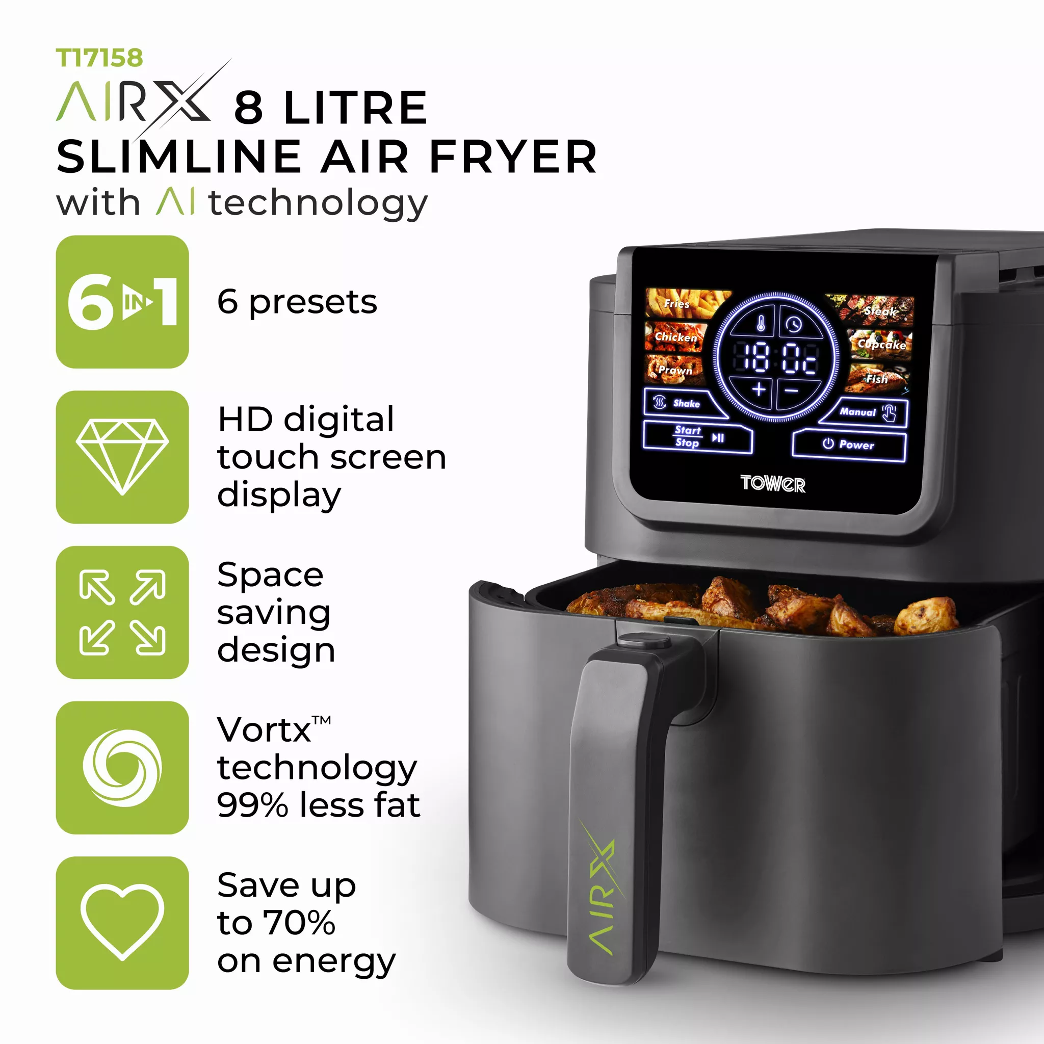 Tower AirX T17158 8L Grey Single Basket Digital Air Fryer
