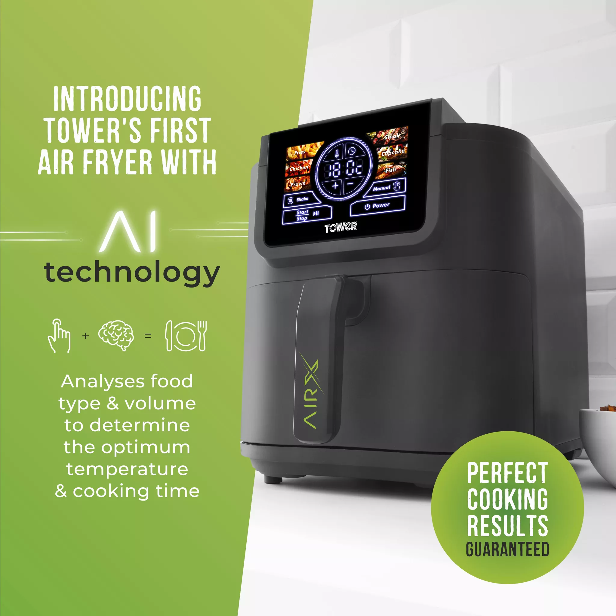 1700W 8L Air fryer with digital AI smart cooking technologyAutomatically calculates the time and temp based on volume of food