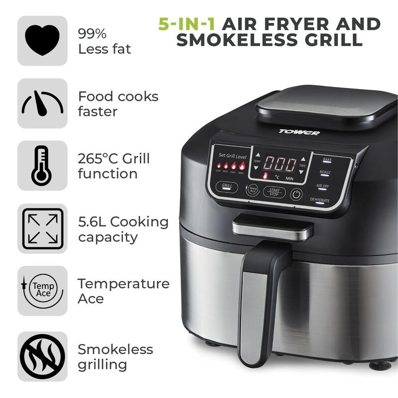 Tower T17086 Vortx 5.6L Air Fryer and Smokeless Grill
