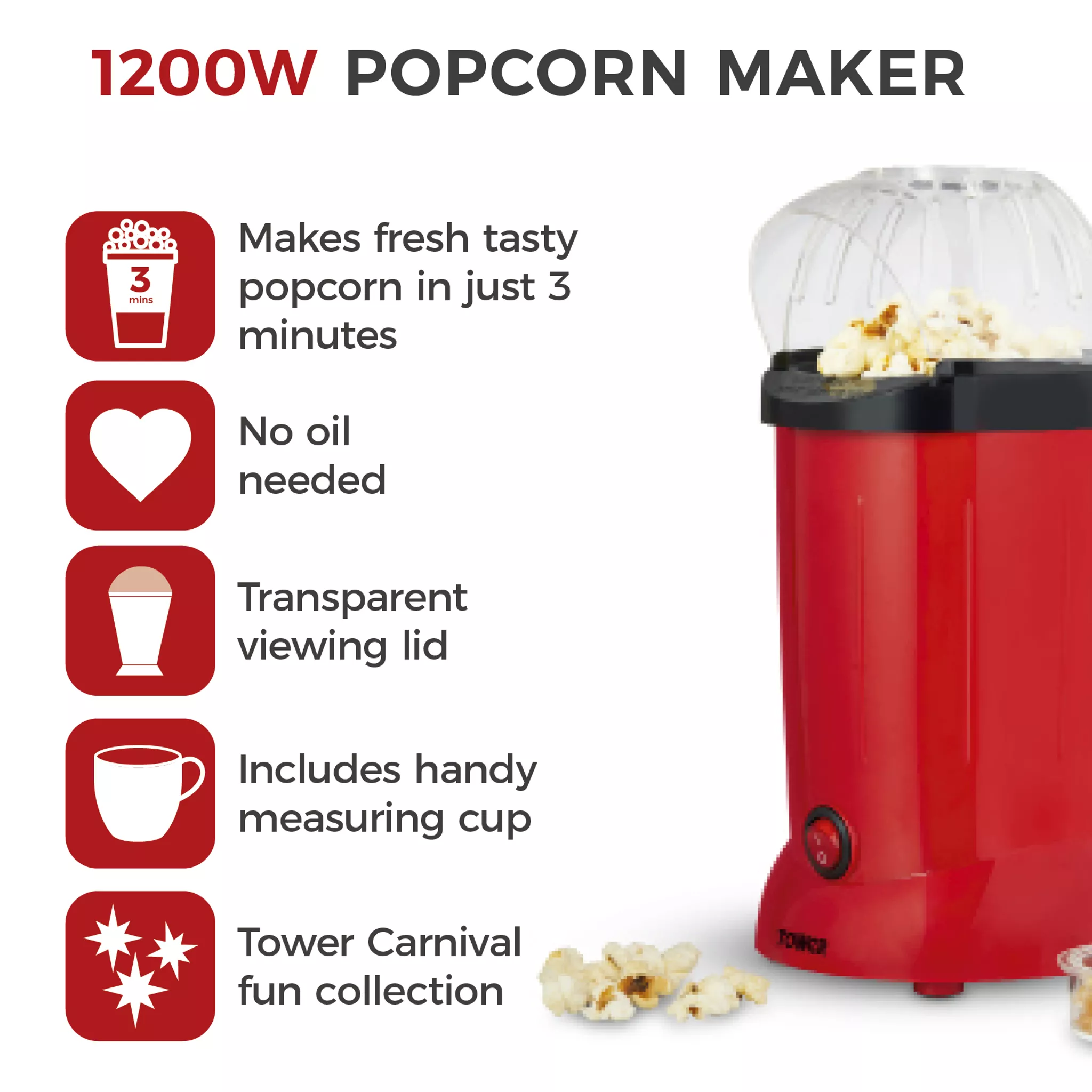 Tower T19050RD 900W Pop Corn Maker
