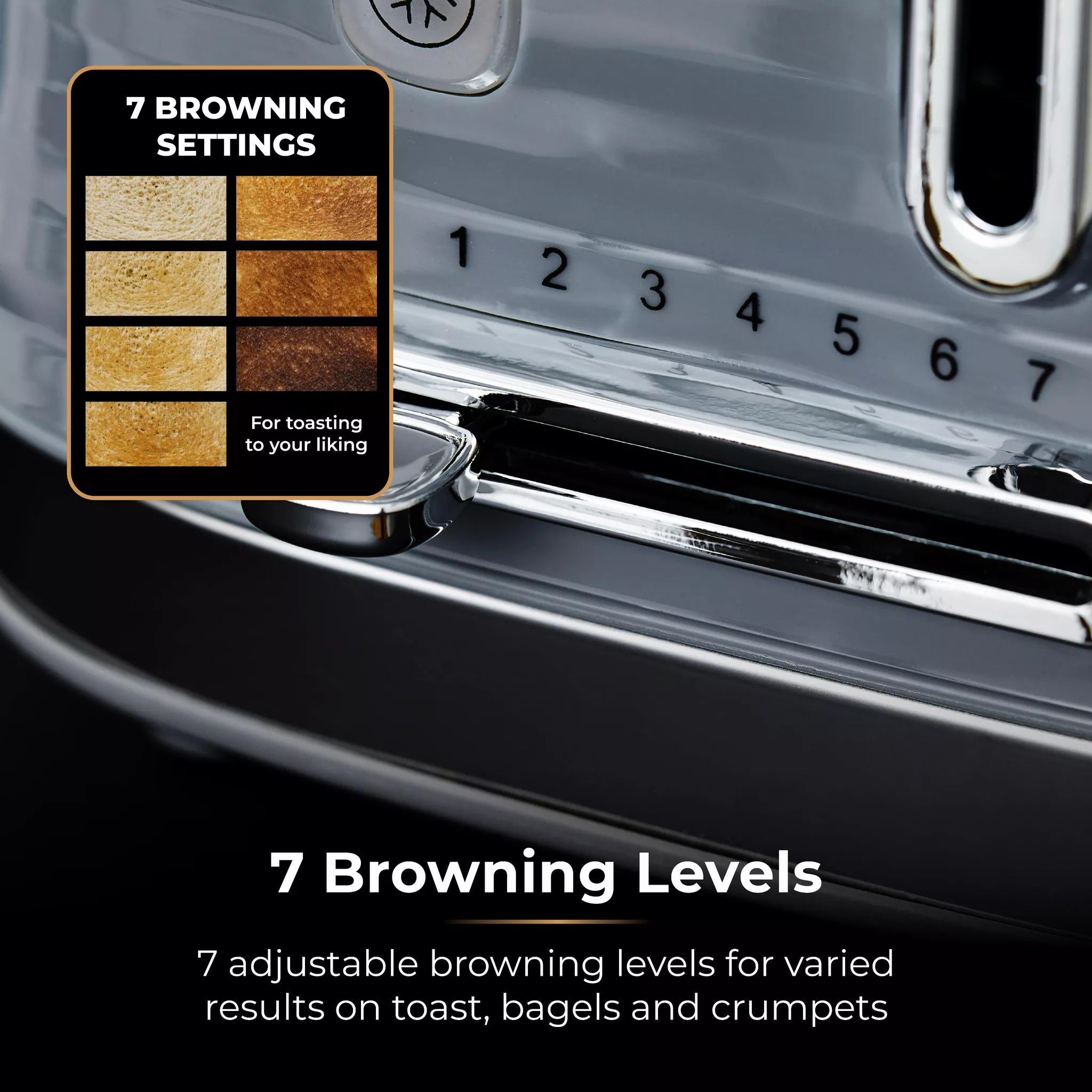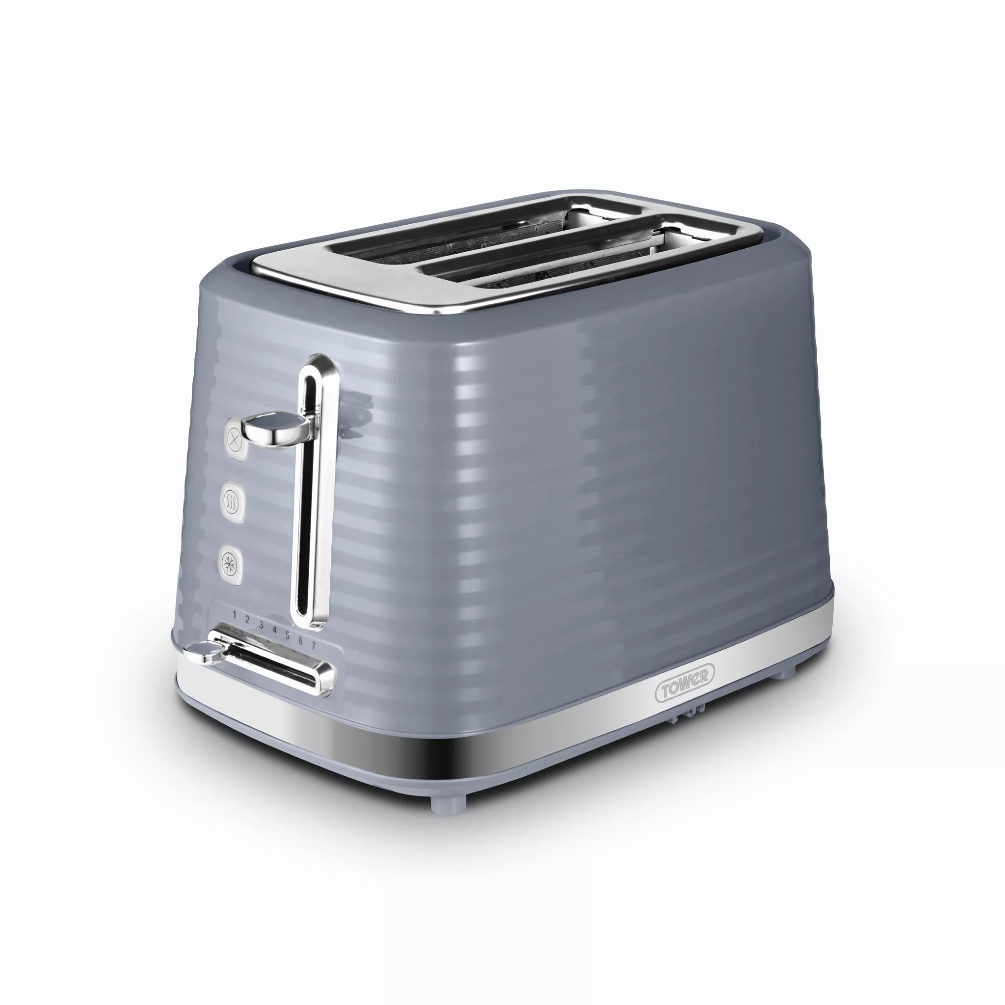 Tower T20083GRY Saturn 2-Slice Toaster with 7 Browning Levels – Defrost/Reheat/Cancel – Grey and Chrome Accents
