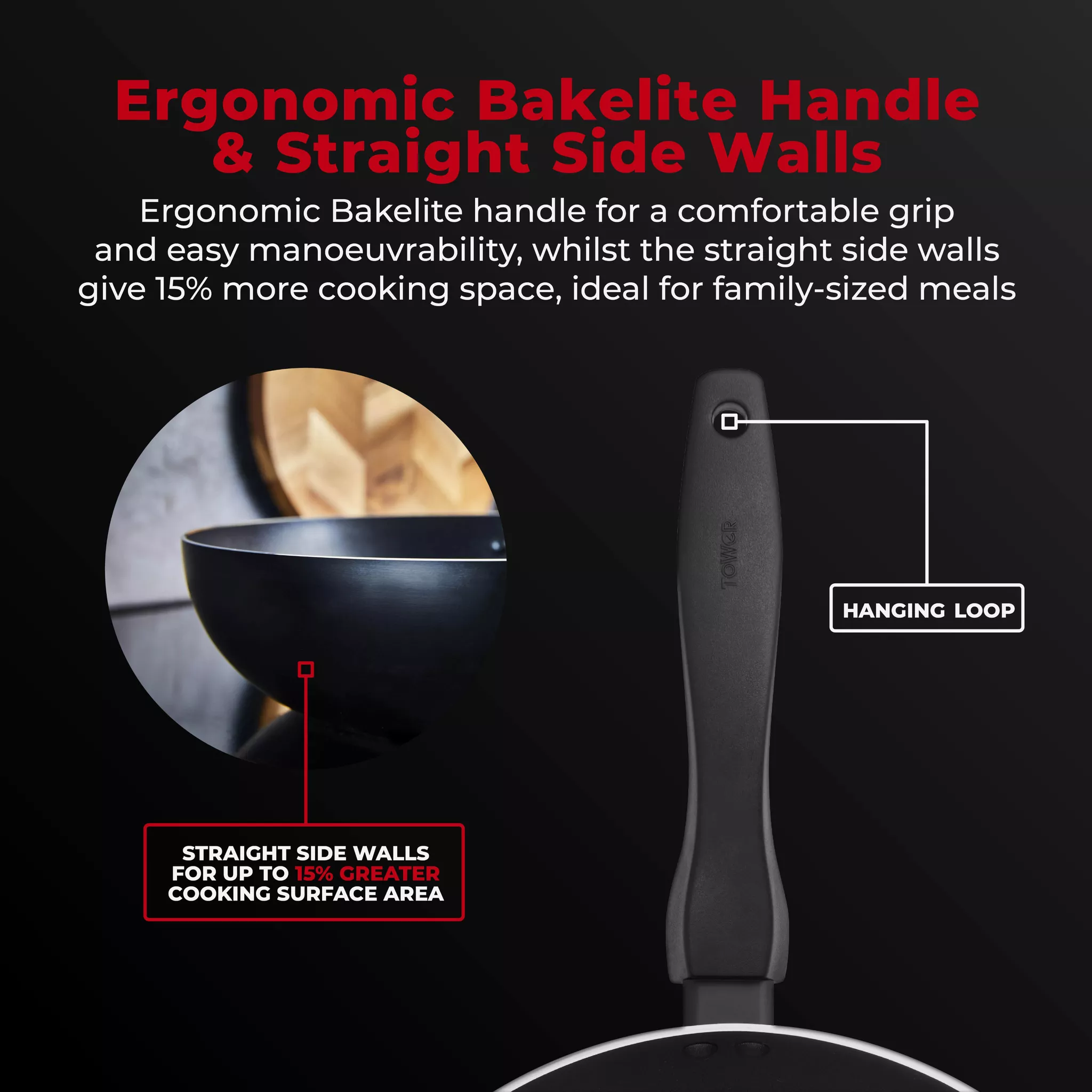 Tower T700316 SmartStart Gourmet 28cm Aluminium Wok- Induction Compatible -Oven Safe – Black