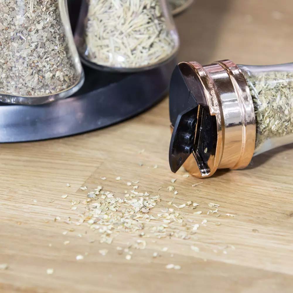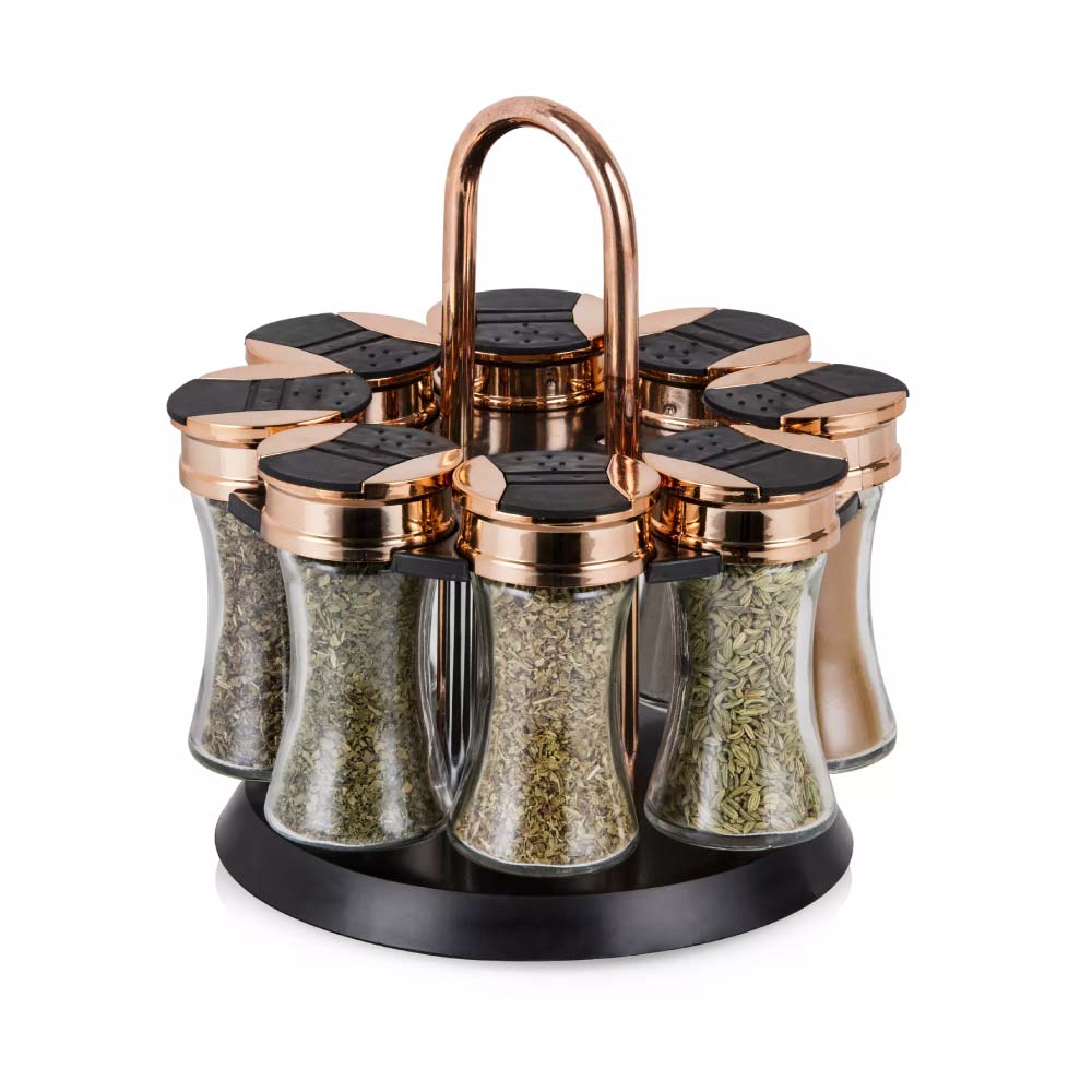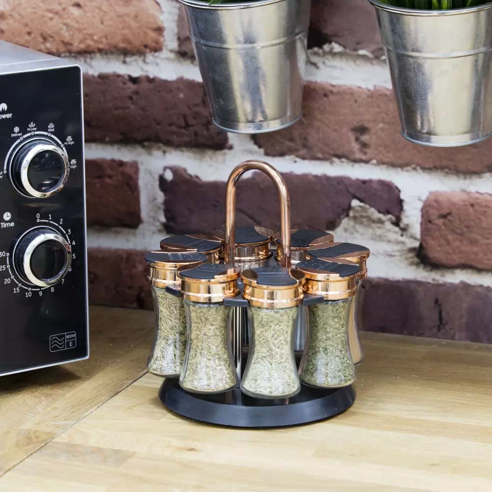 Tower T826020RM Rotating Spice Rack 8 Jars – Pre-filled Jars – Rose Gold