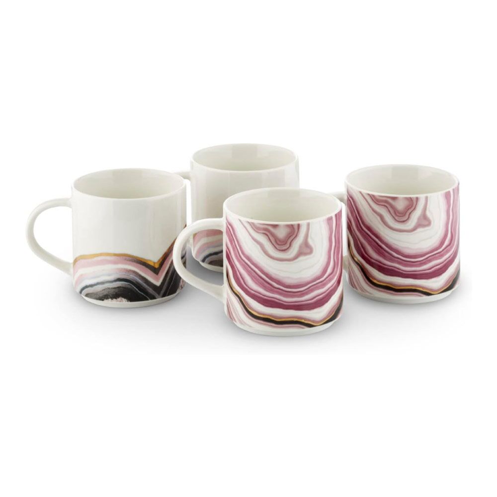 Tower T874002PNK Set of 4 Geode Mugs, Tea, Coffee, Pink