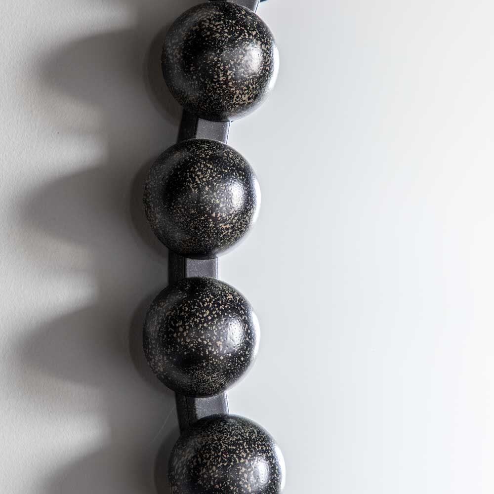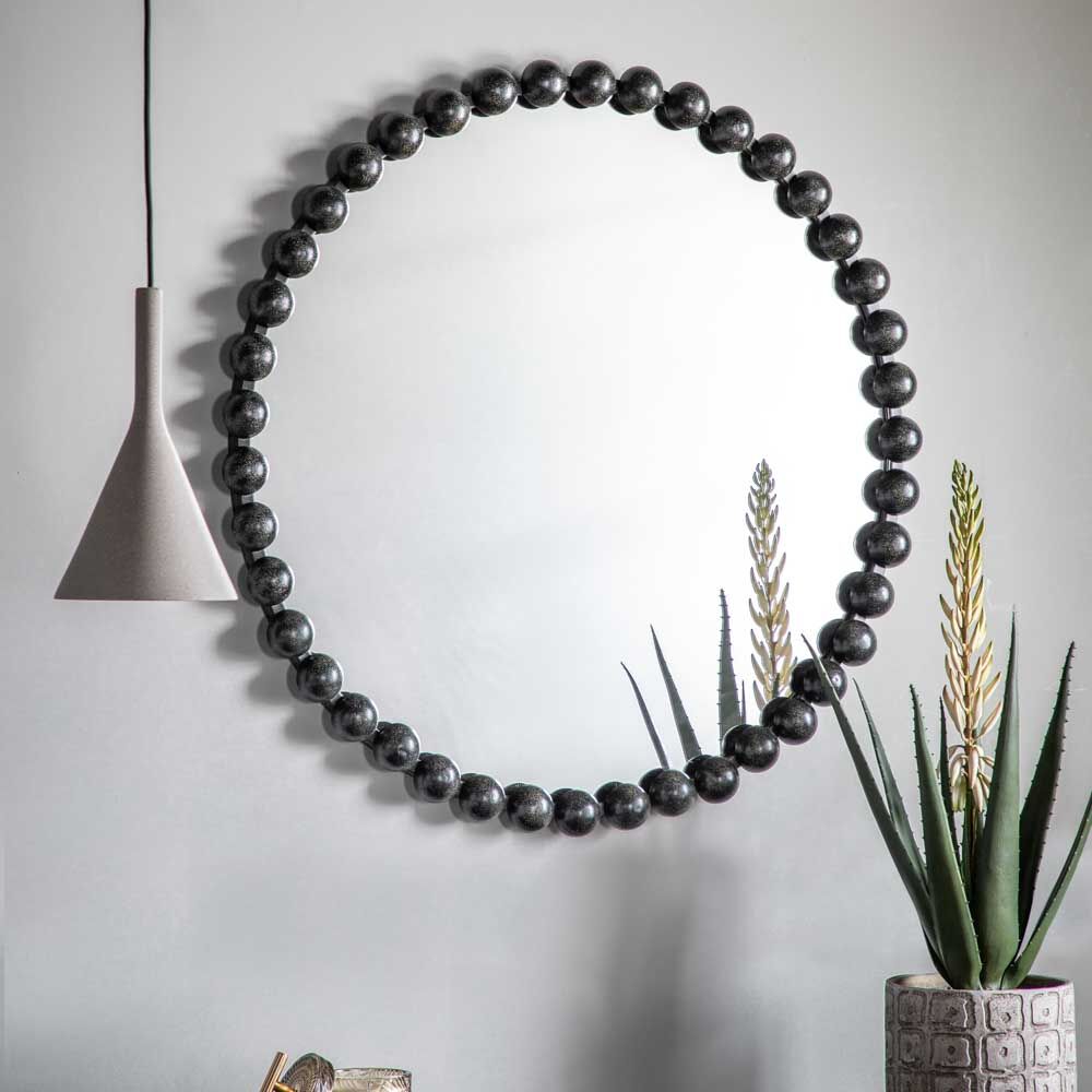 Inspired by high-end design this mirror features an oversized beading style design with a bold black finish frame. Simple yet beautifully round design this Ceretti mirror is a striking and stylish addition to bring a room together.