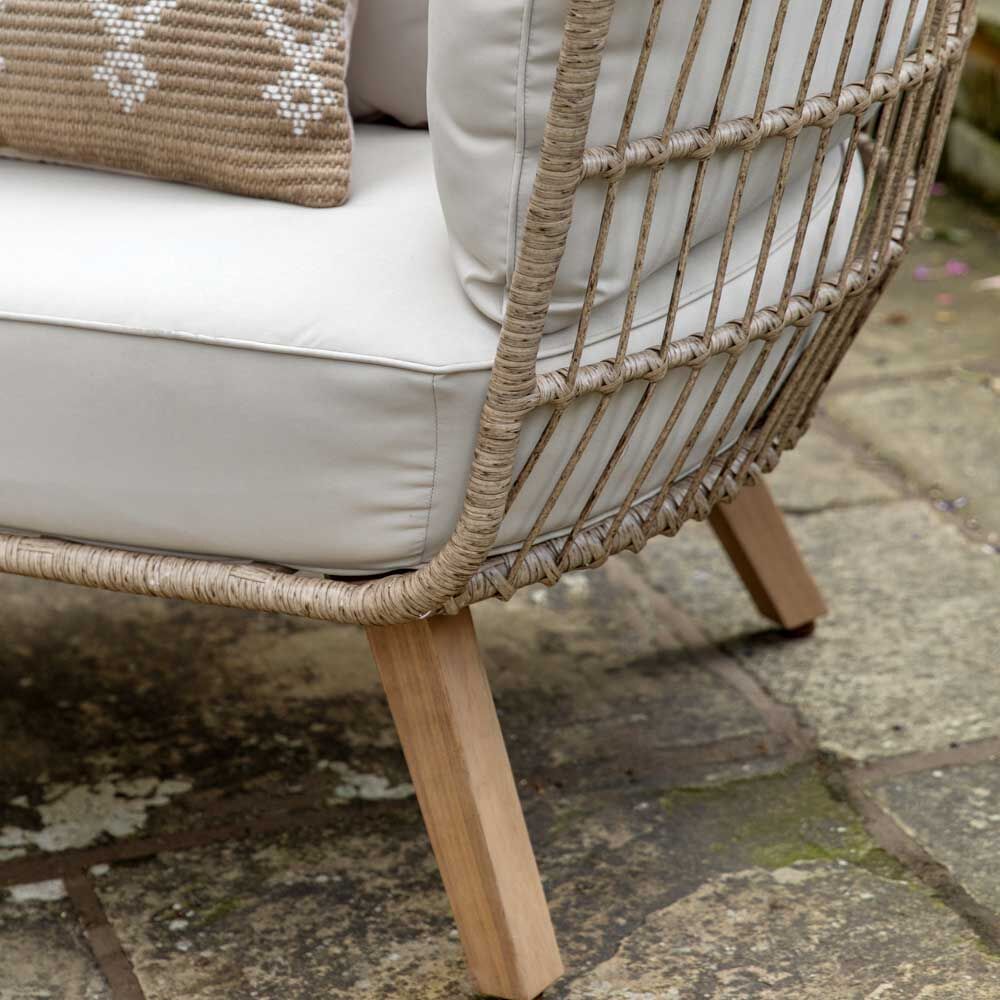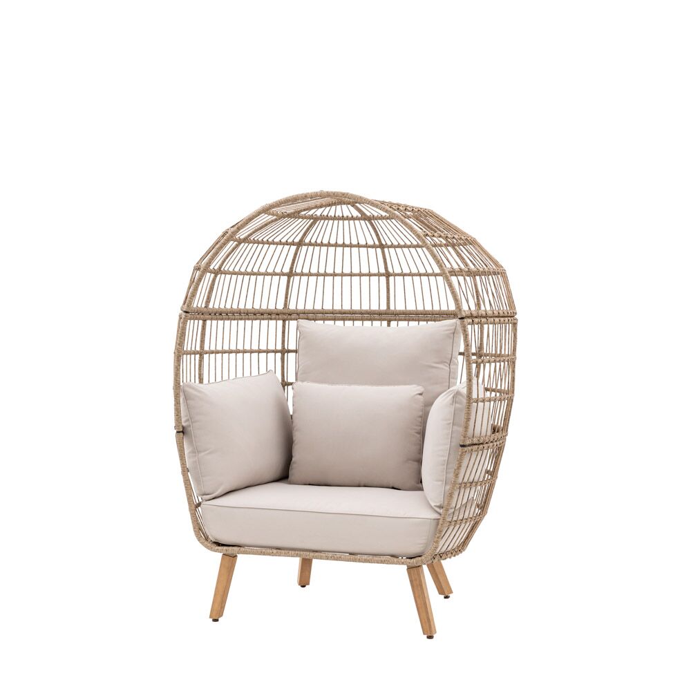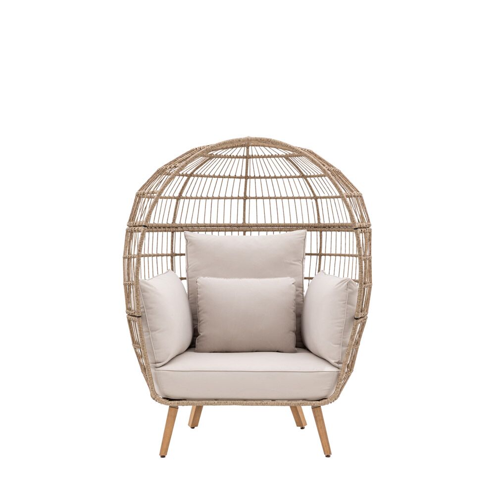Crafted with a blend of natural wicker and plush cushions, this chair offers a cocoon-like retreat for relaxation and reflection. The unique design adds a touch of whimsy to any patio or garden, while the comfortable cushioned seating ensures hours of blissful relaxation.