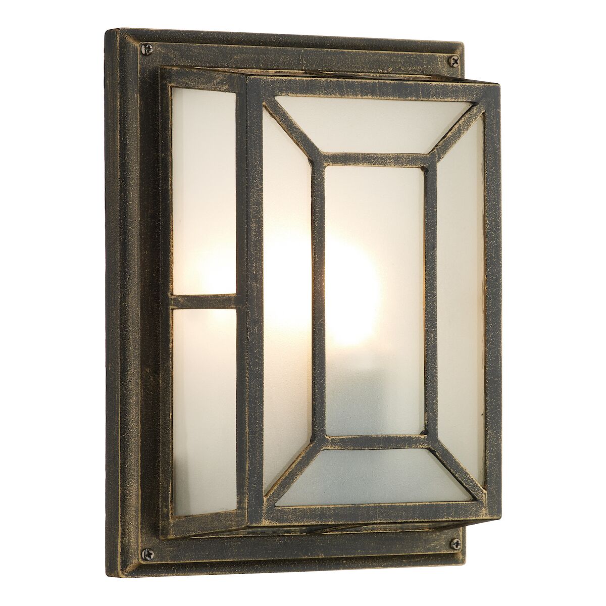 Trent Outdoor Wall Light Black/Gold Frosted Glass IP44