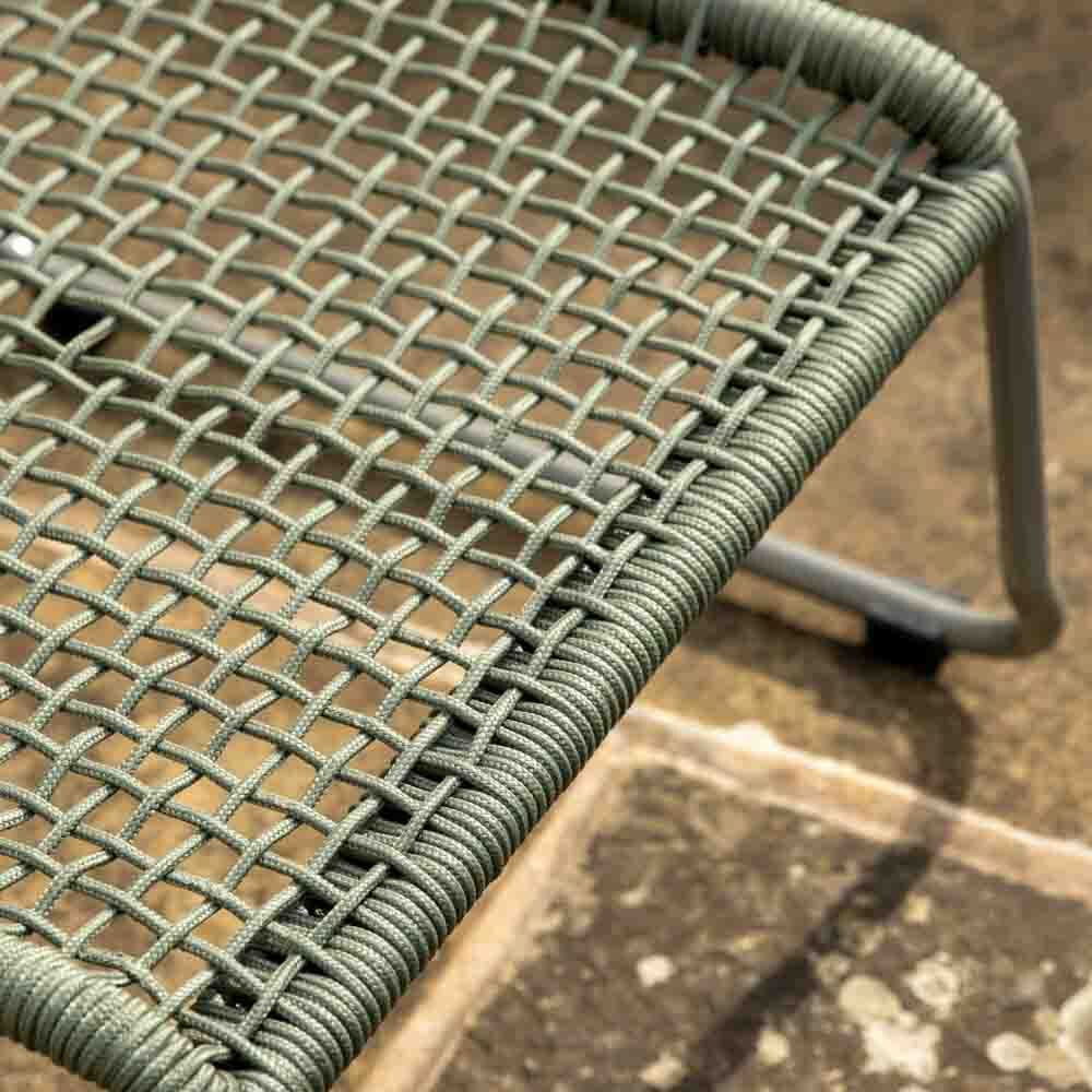 Add a pop of colour and the wow factor to your outdoor space this summer. Sit back and relax in this comfortable chic green lounger chair and footstool, made with a steel frame with woven outdoor rope seat and back for extra comfort.