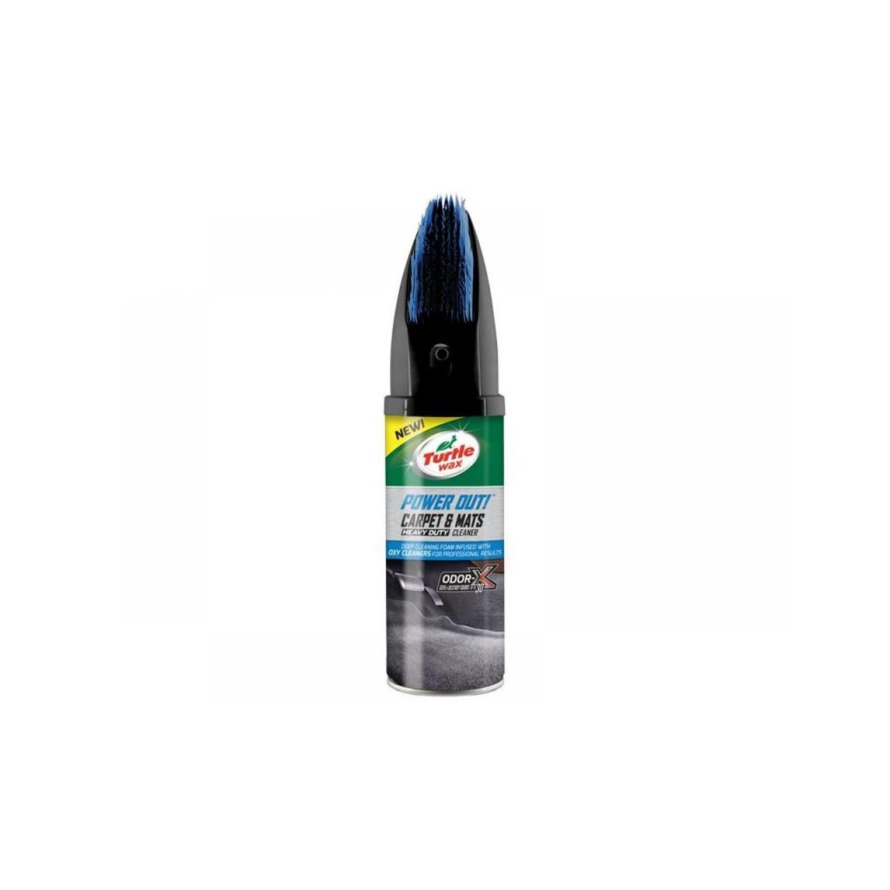 Turtle Wax Power Out! Carpet & Mats Cleaner is a heavy-duty foam cleaner developed specifically to clean deep into carpets, mats and rubber boot liners. It lifts set-in stains including pet soils, heavy-duty oil and grease. Its fast-drying formula leaves seats soft without any dampness.