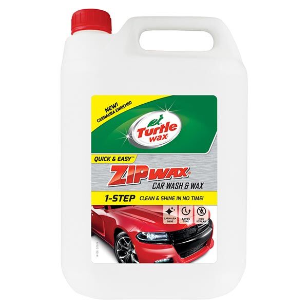 The Turtle Wax Essential Zip Wax Super Concentrate Wash & Wax 5L is an easy to use car cleaner. Simply add a capful into a bucket of warm water and wash your car as normal. With added wax, it provides a shine as it washes, leaving a brilliant streak-free finish every time. The carnauba wax leaves behind a water repellent finish, ensuring your vehicle shines for longer!